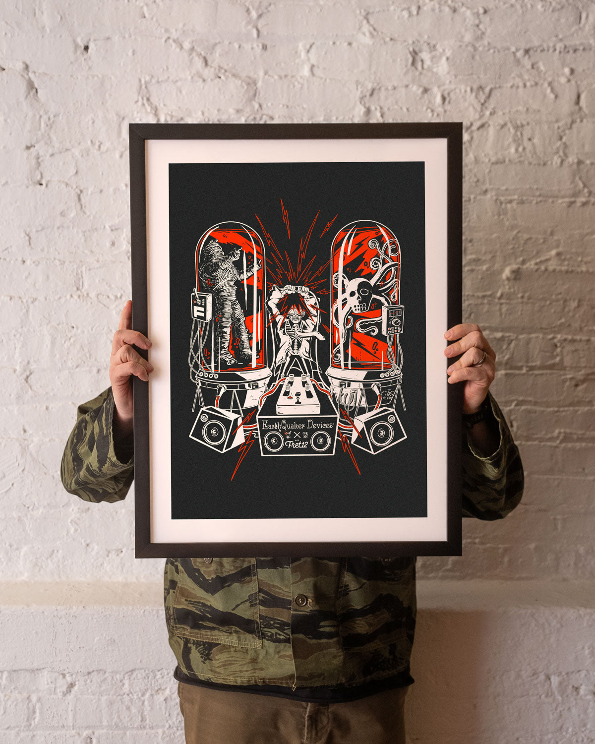 We teamed up with the legends at EarthQuaker Devices for a hands-on in-store at our shop inside Salt Shed, featuring founders Jamie Stillman & Julie Robbins. To celebrate our first in-store with EQD, we created a custom art edition of their legendary HOOF Fuzz.