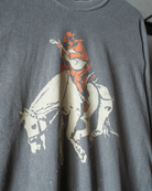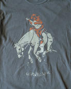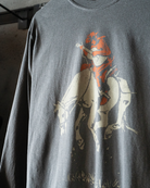 The Bucking Bronco long sleeve depicts the pioneering spirit of guitar players who push their limits. Hand drawn artwork captures the rugged character of the wild west with a bit of whimsy. While some may saddle up to follow the latest cowboy trend, guitar has been a staple on the frontier for nearly a century.