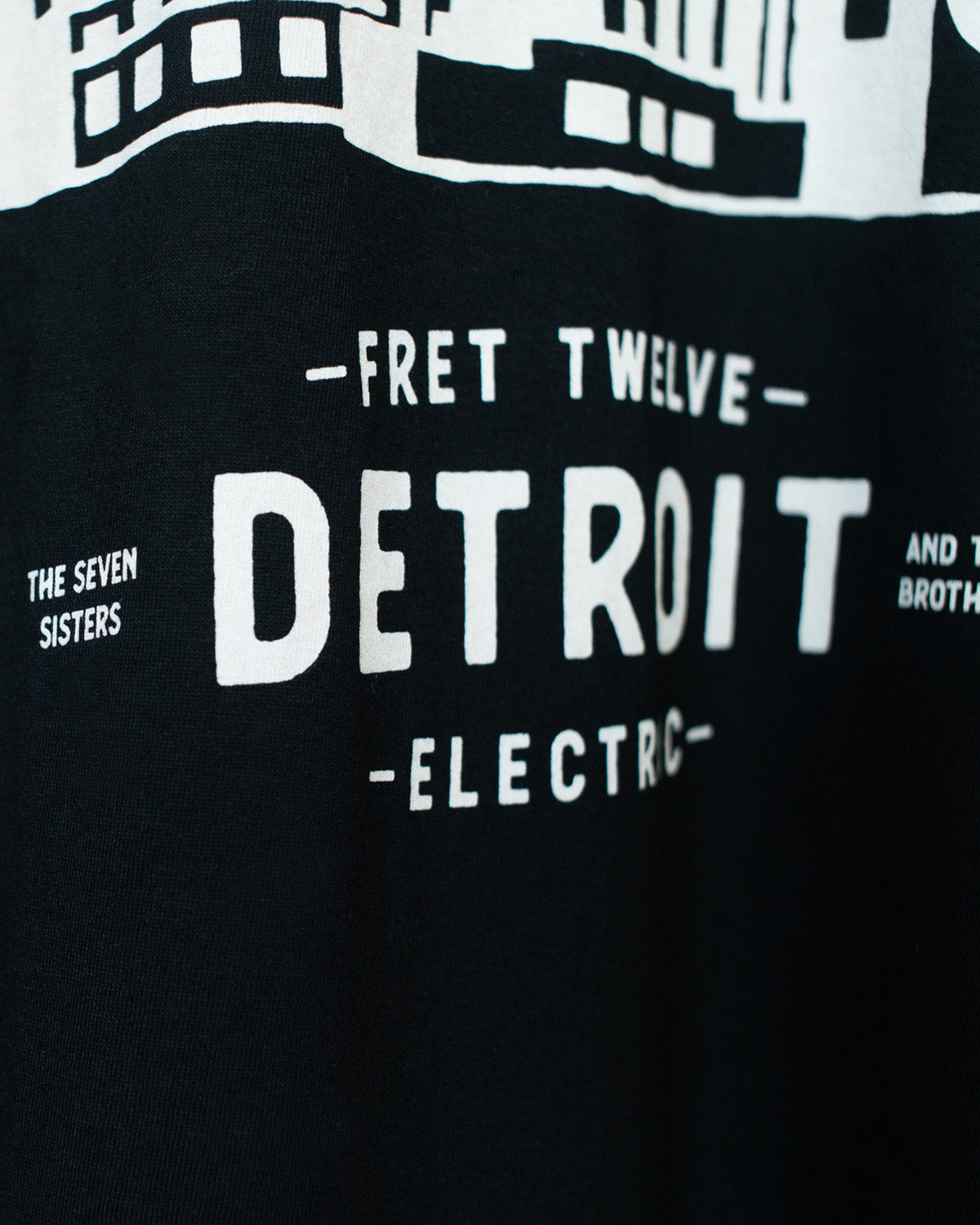 Providing power and lifeblood to Motown for decades, the iconic 'Seven Sisters' power station lives on in our t-shirt tribute to the real soul of Detroit's high voltage energy. Mid-weight cotton tee in black.