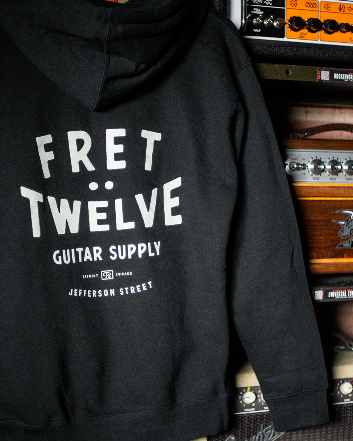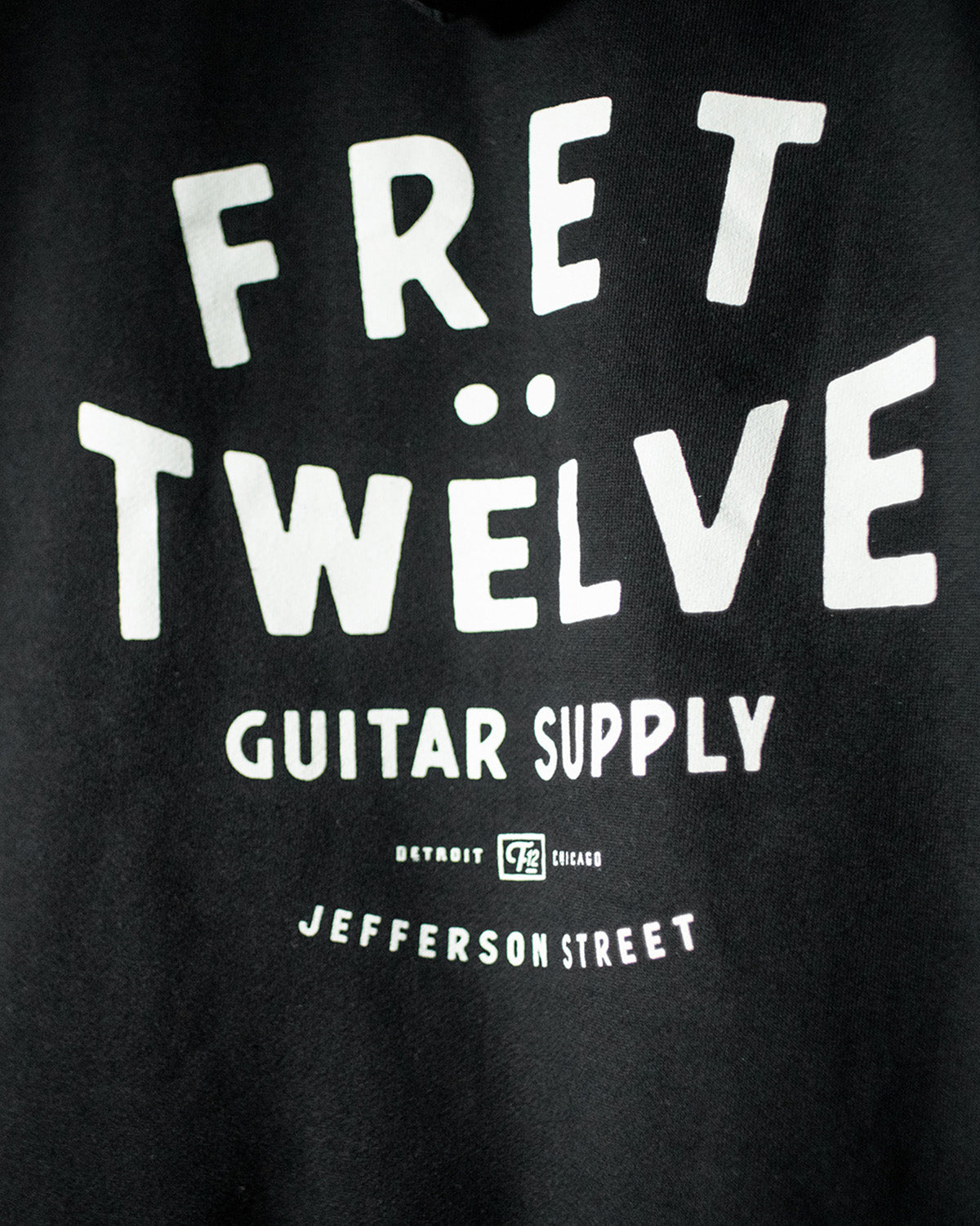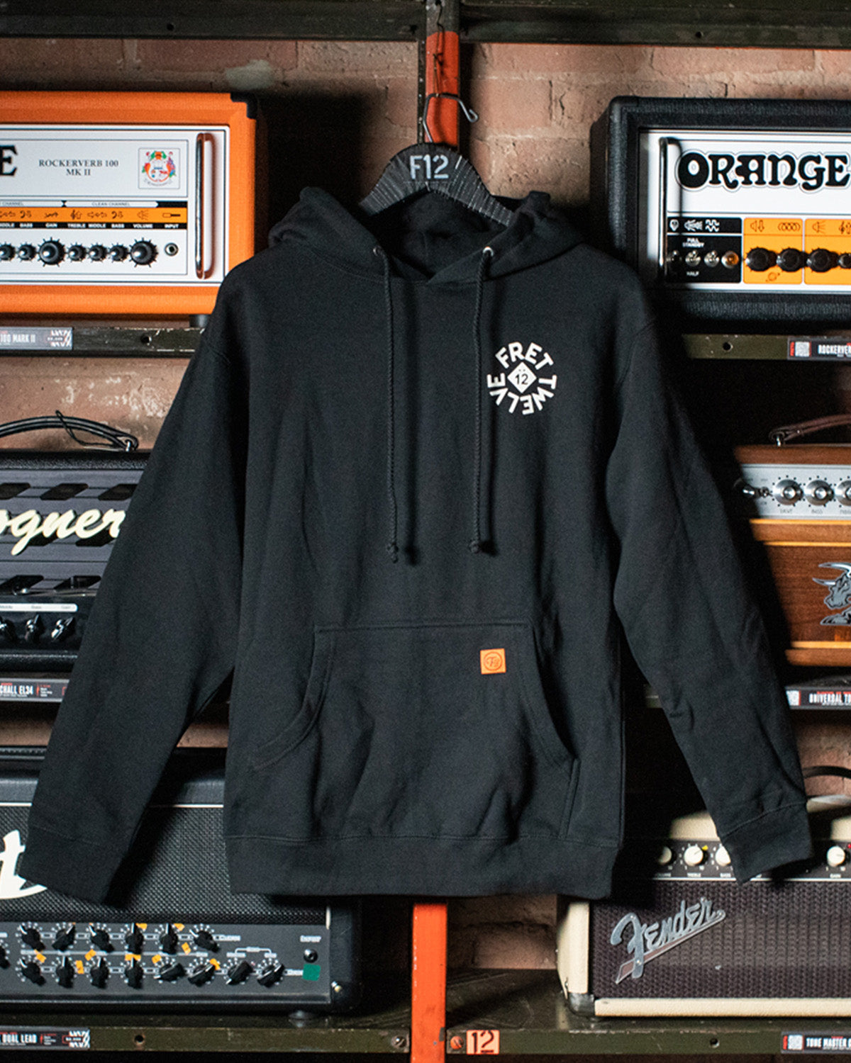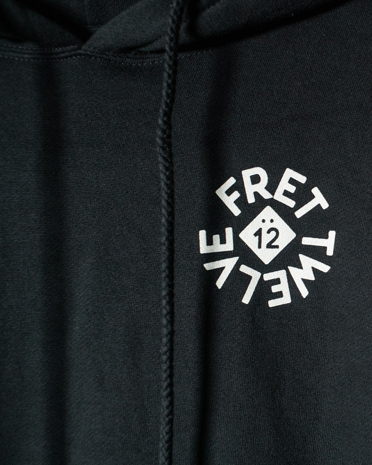 The FRET TWELVE Guitar Supply hoodie is a part of the FRET12 Core collection.