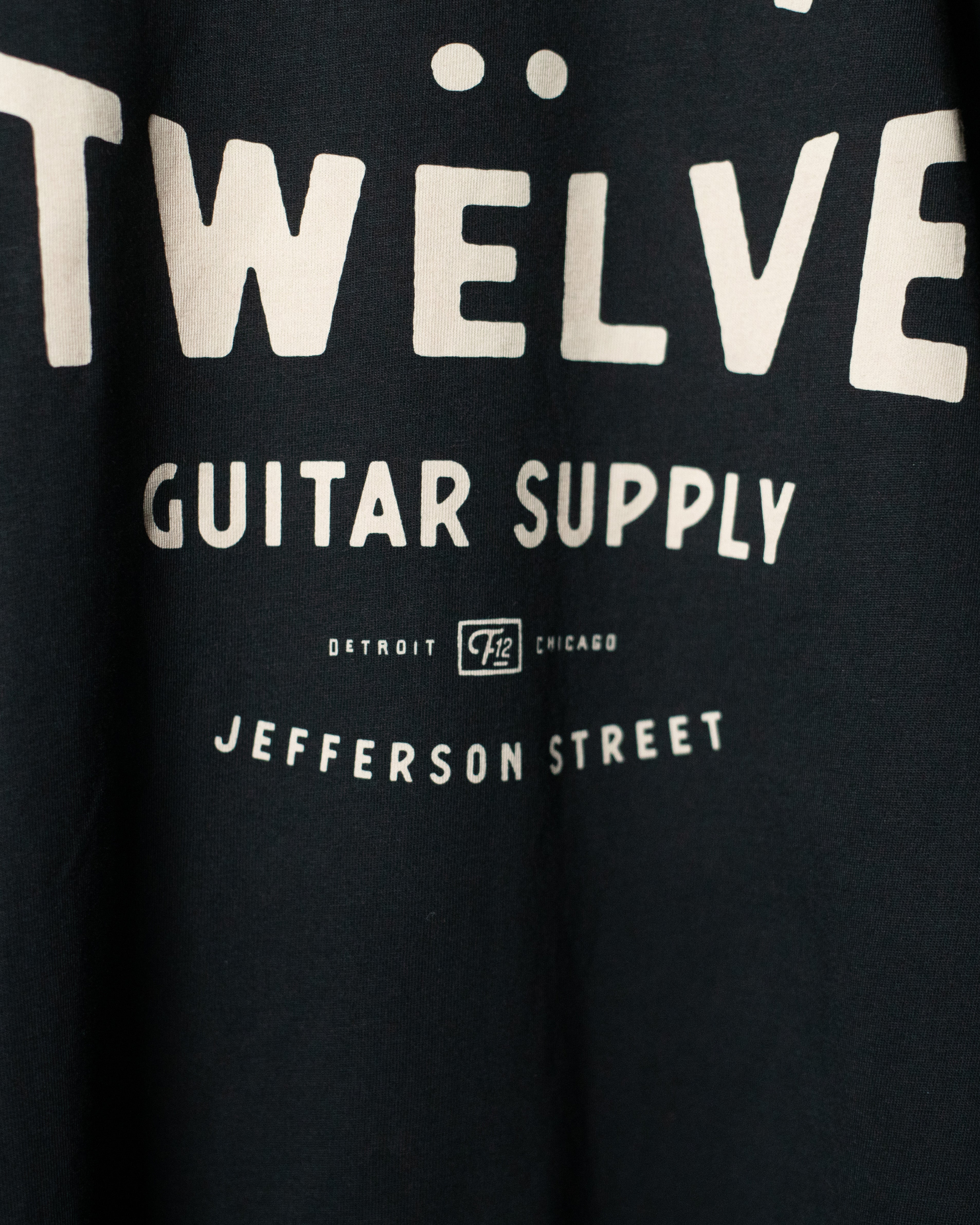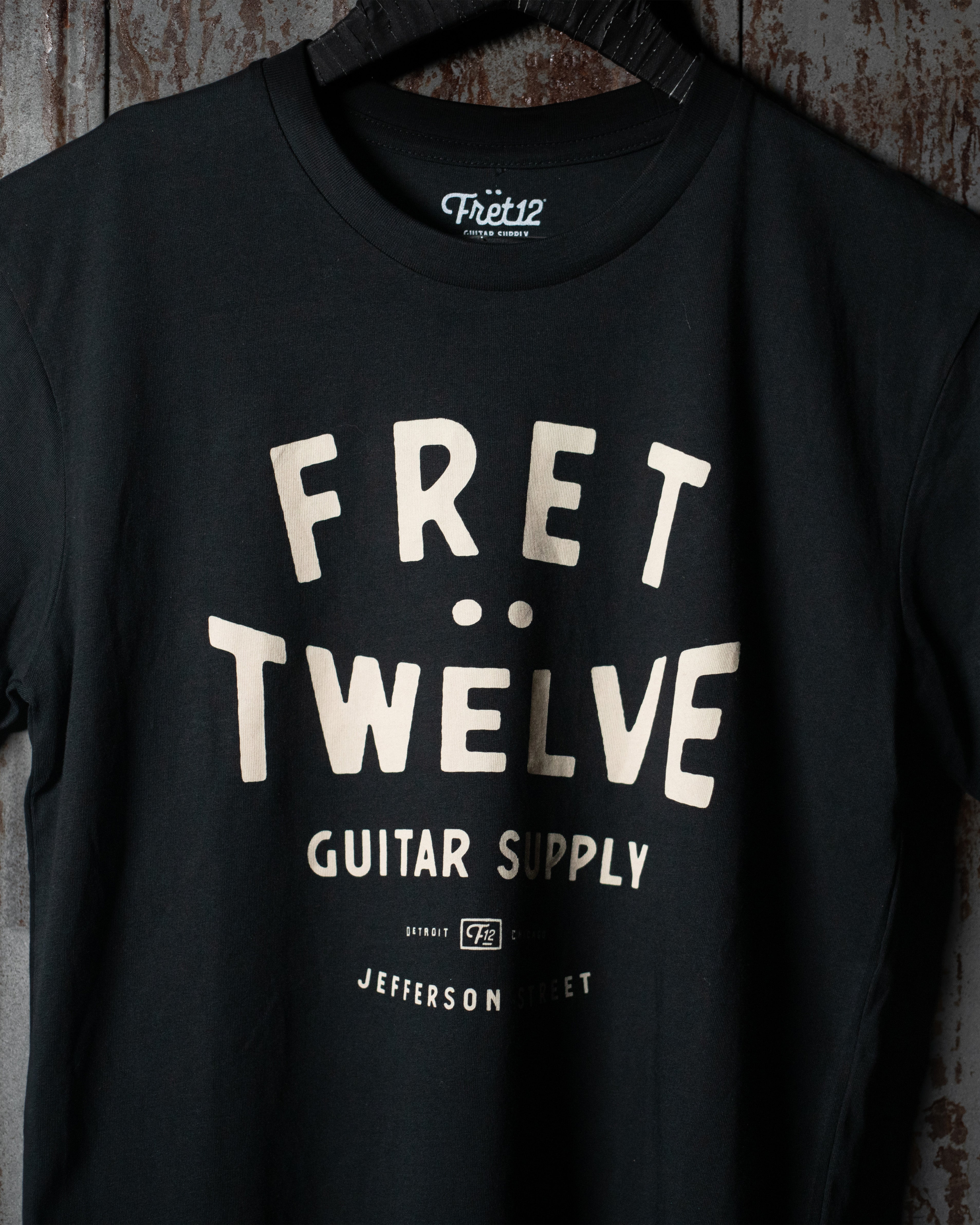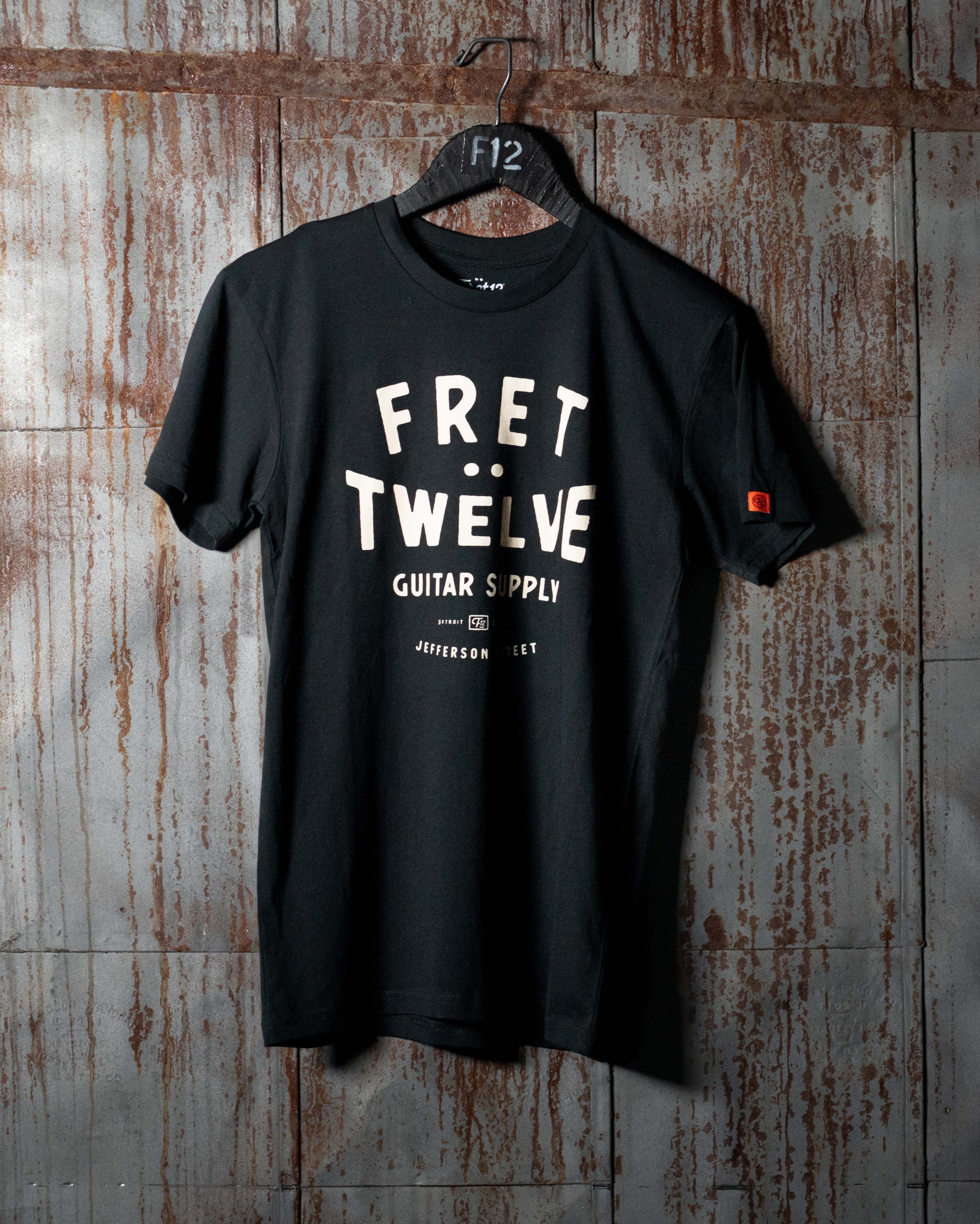 Part of our core collection, this tee features the Fret12 Guitar Supply logo in off-white.