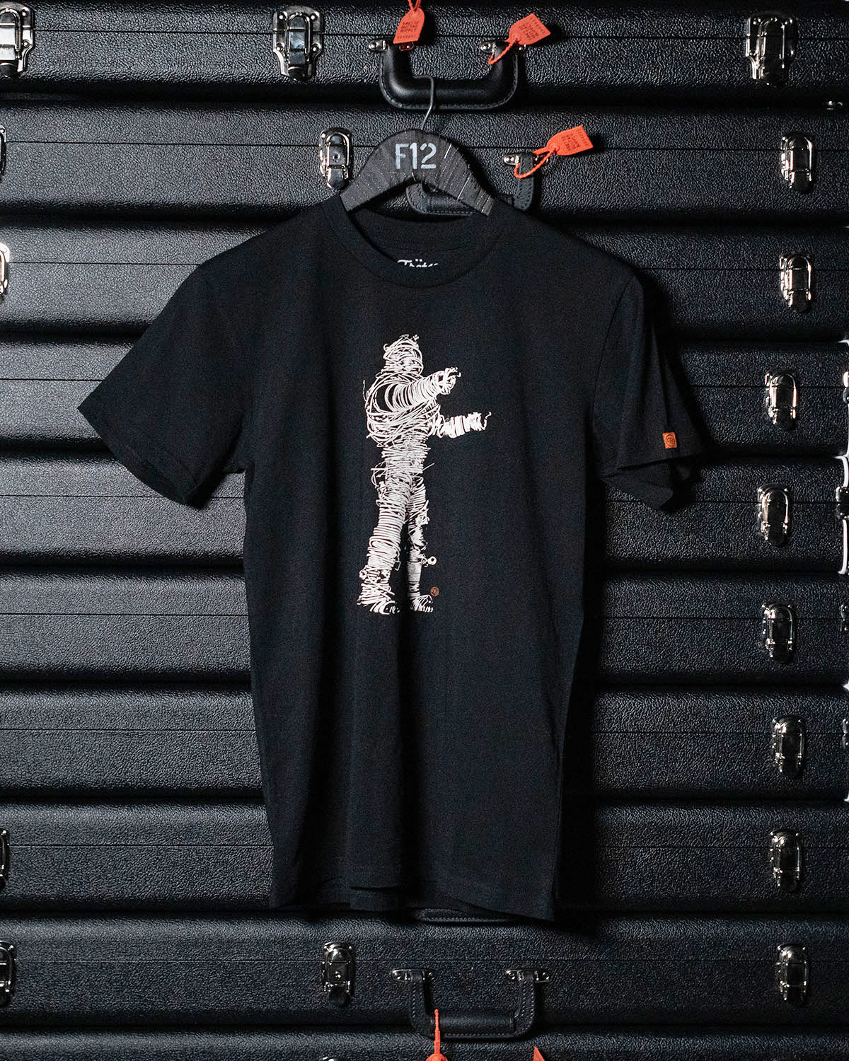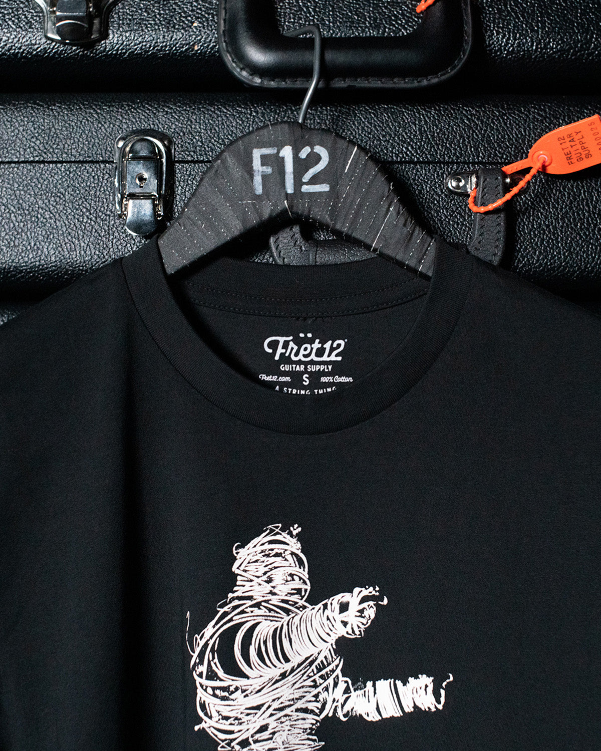 Rising from a pile of strings discarded backstage, our zombified, somnambulist mascot roams the musical universe in search of great tone.