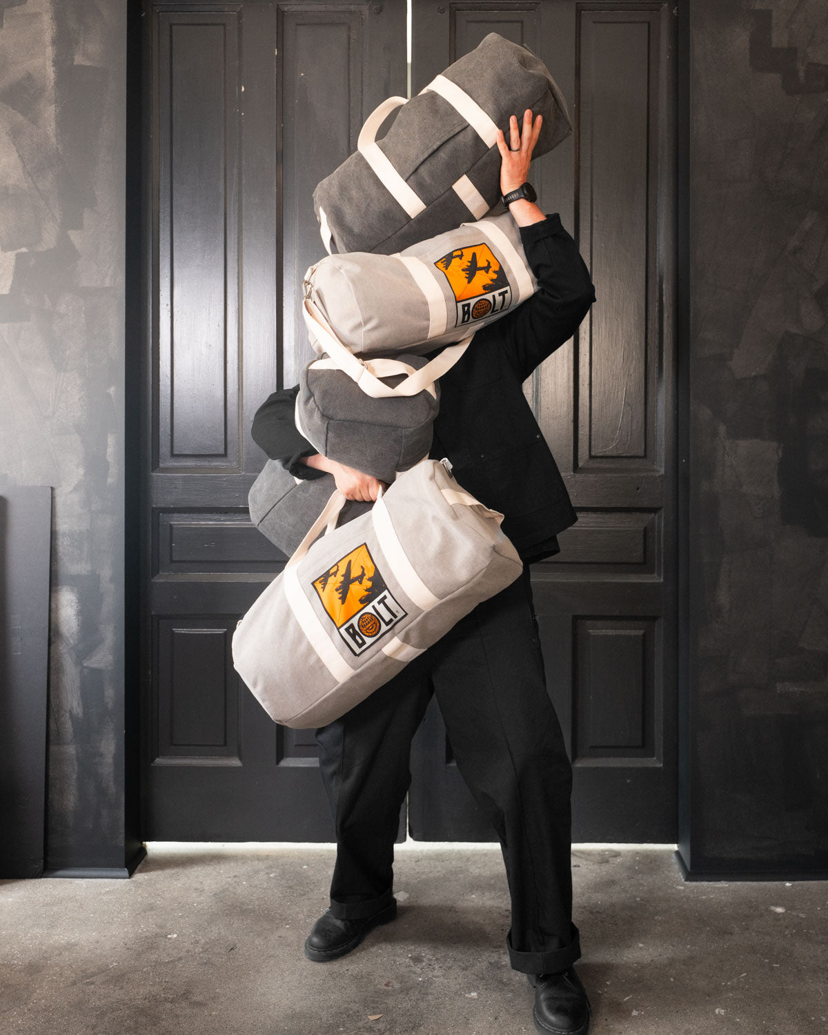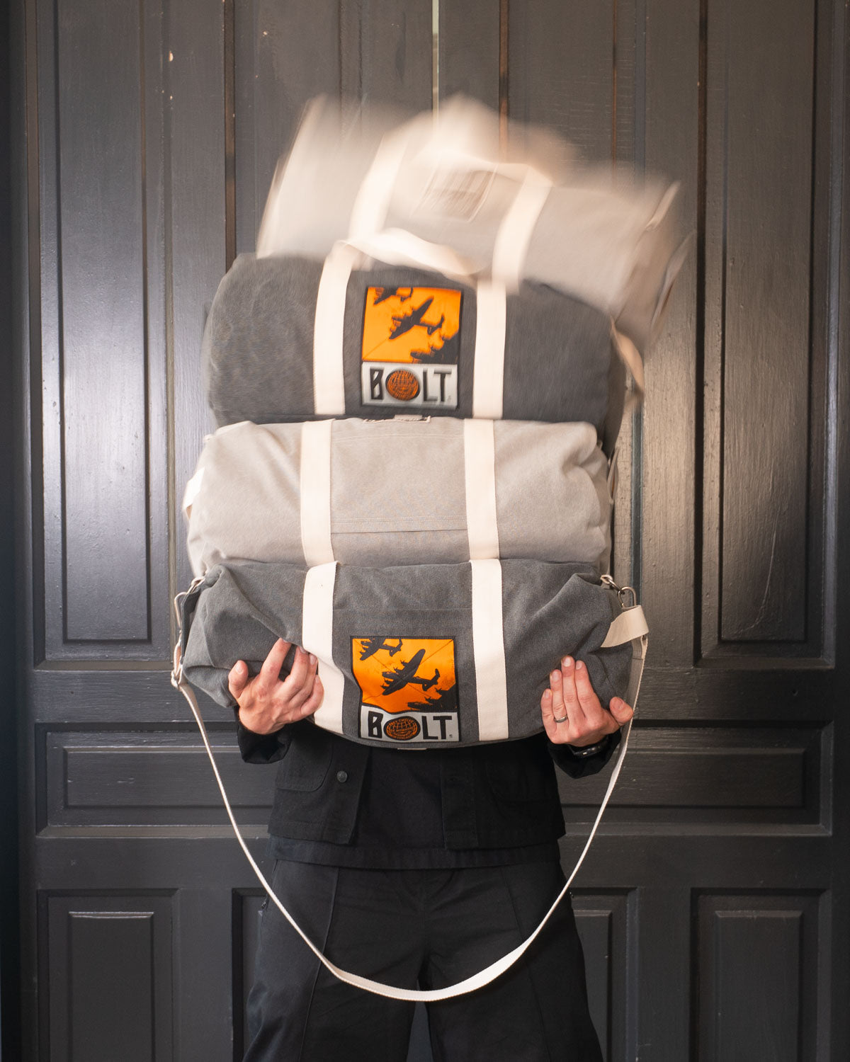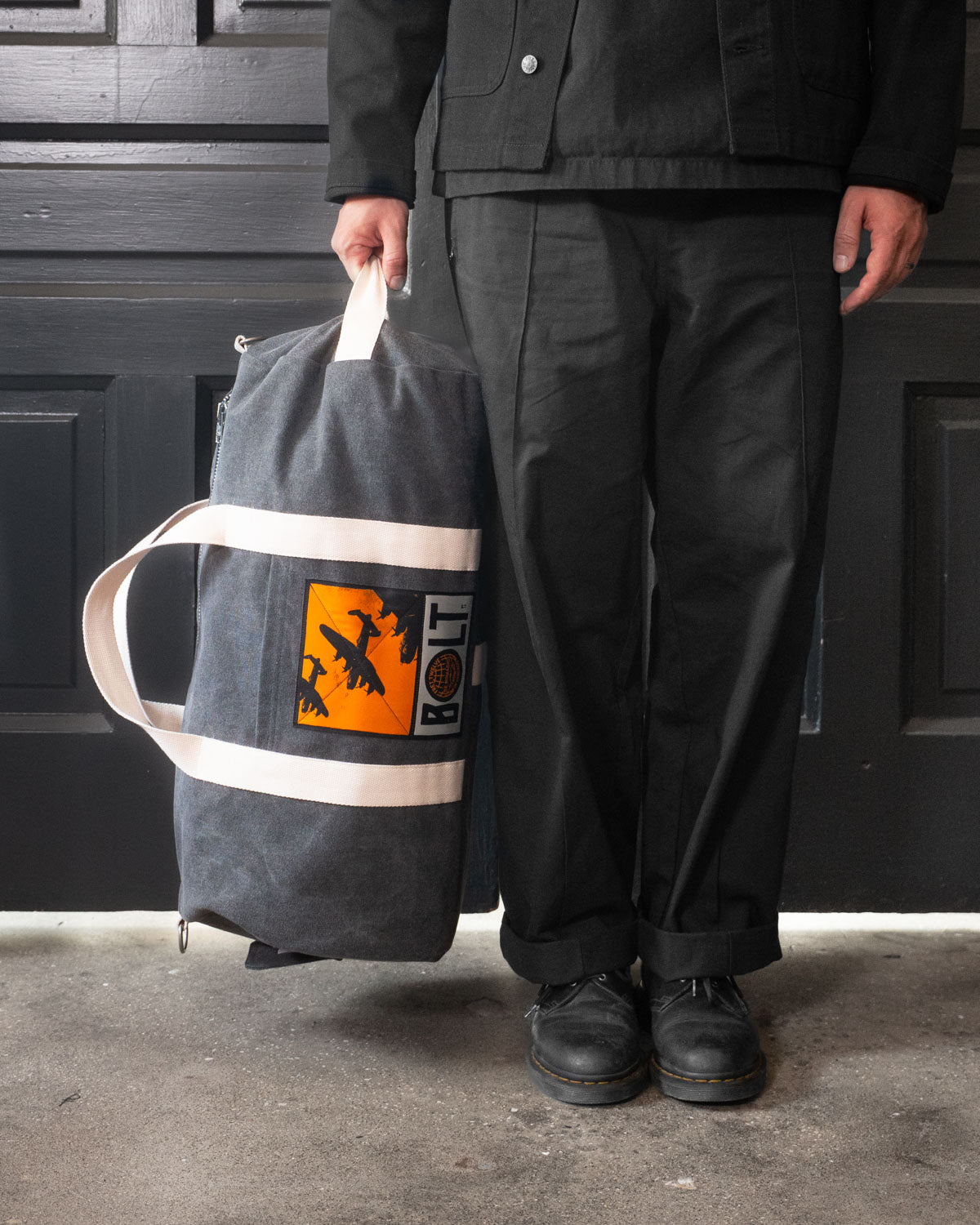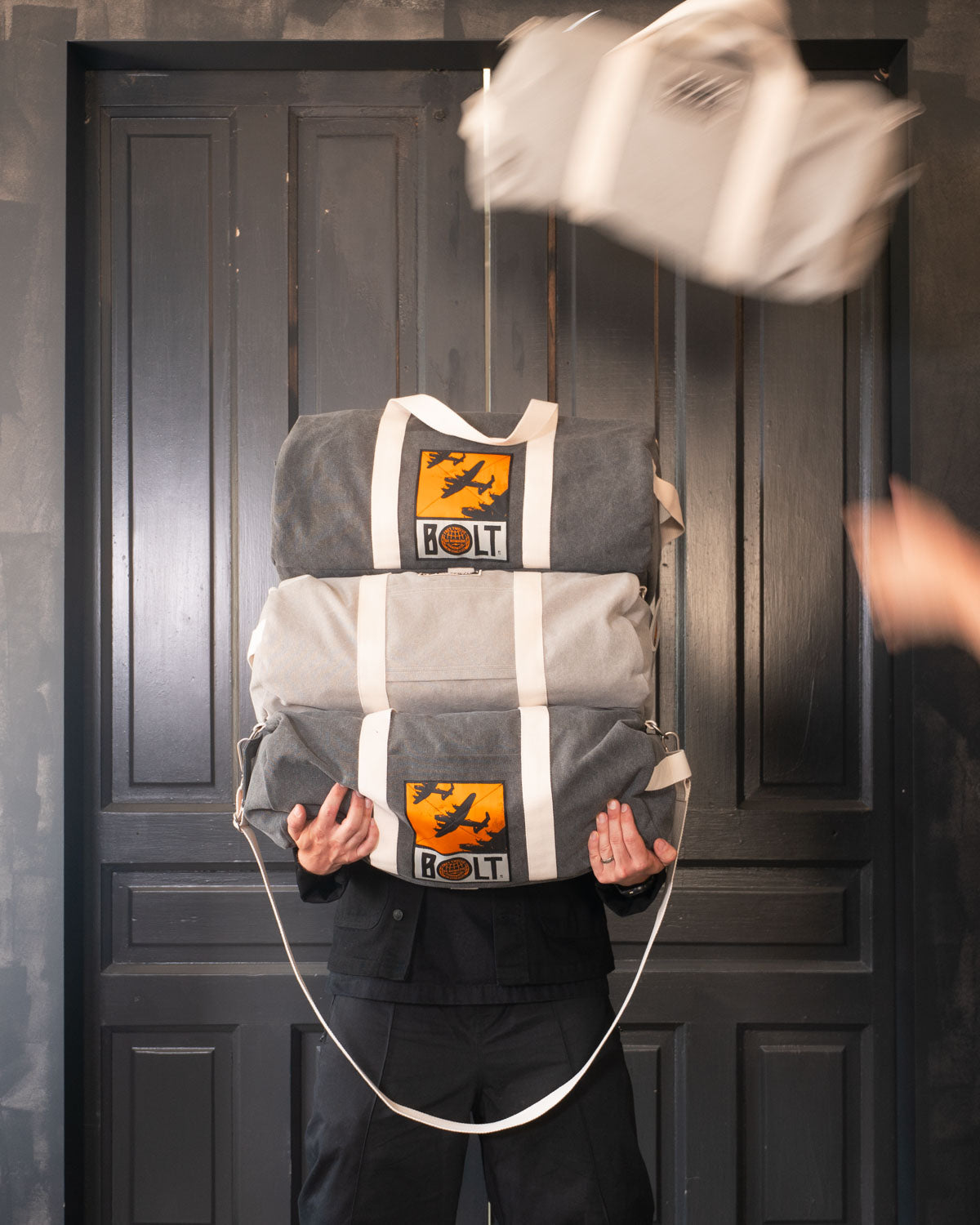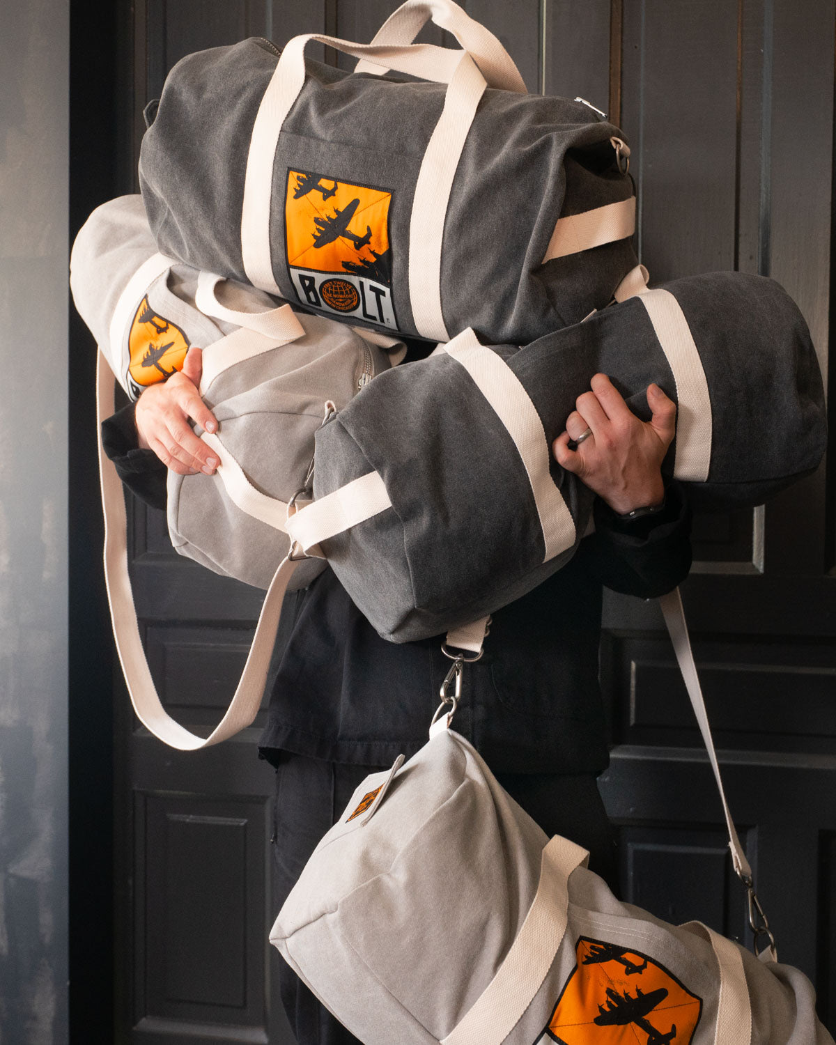 This heavy-duty duffle is part of our BOLT Series—a collection inspired by the fast pace of touring, the flexibility of road life, and the utility every traveler needs. Designed, cut, and sewn by hand in Chicago at the FRET12 Studio, this 24L bag is ready for everything from band vans to airport terminals.