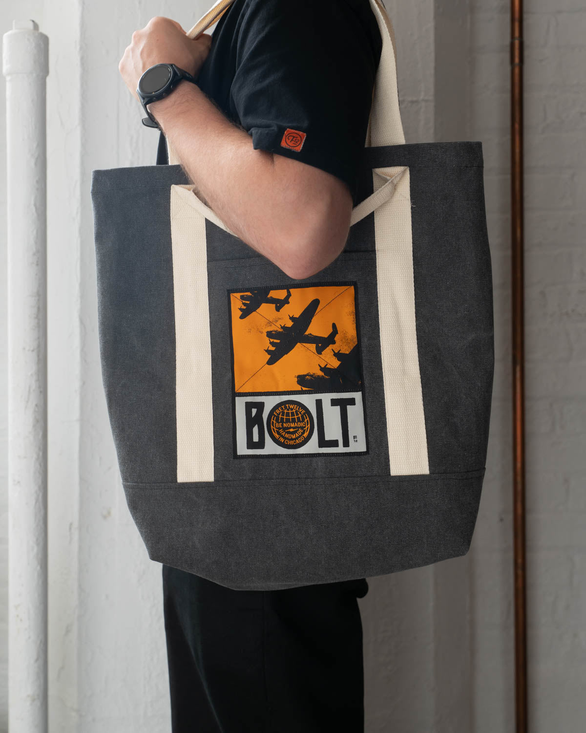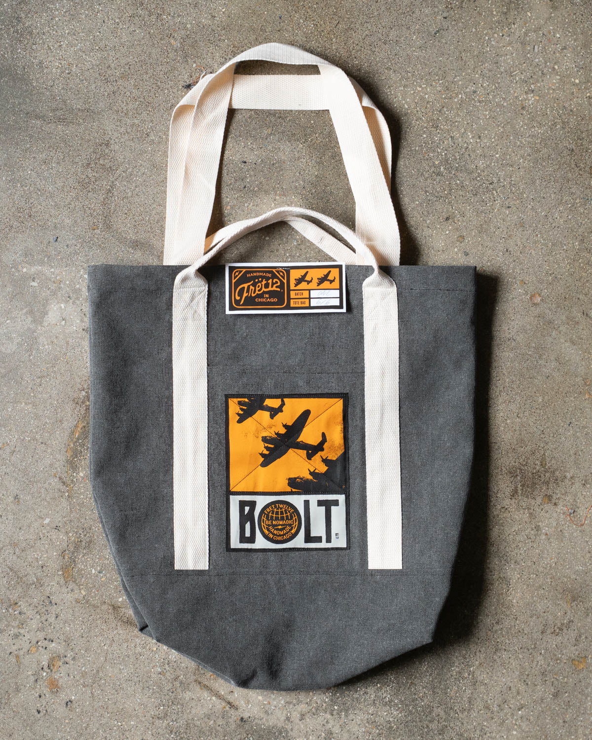 The Bolt Tote Bag is a durable, everyday carryall designed, cut, and sewn in Chicago by FRET12. Made from 100% cotton, it's part of our Bolt Series–gear built for travel, touring and live on the move. With rugged construction and timeless style, this cotton tote is made to last for years of daily use.