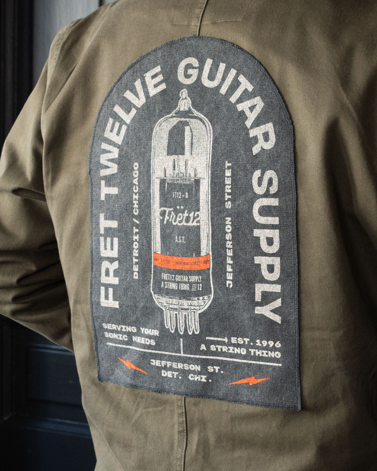 • FRET12 "Bullet Logo" screeb-printed, hand-sewn patch on left breast