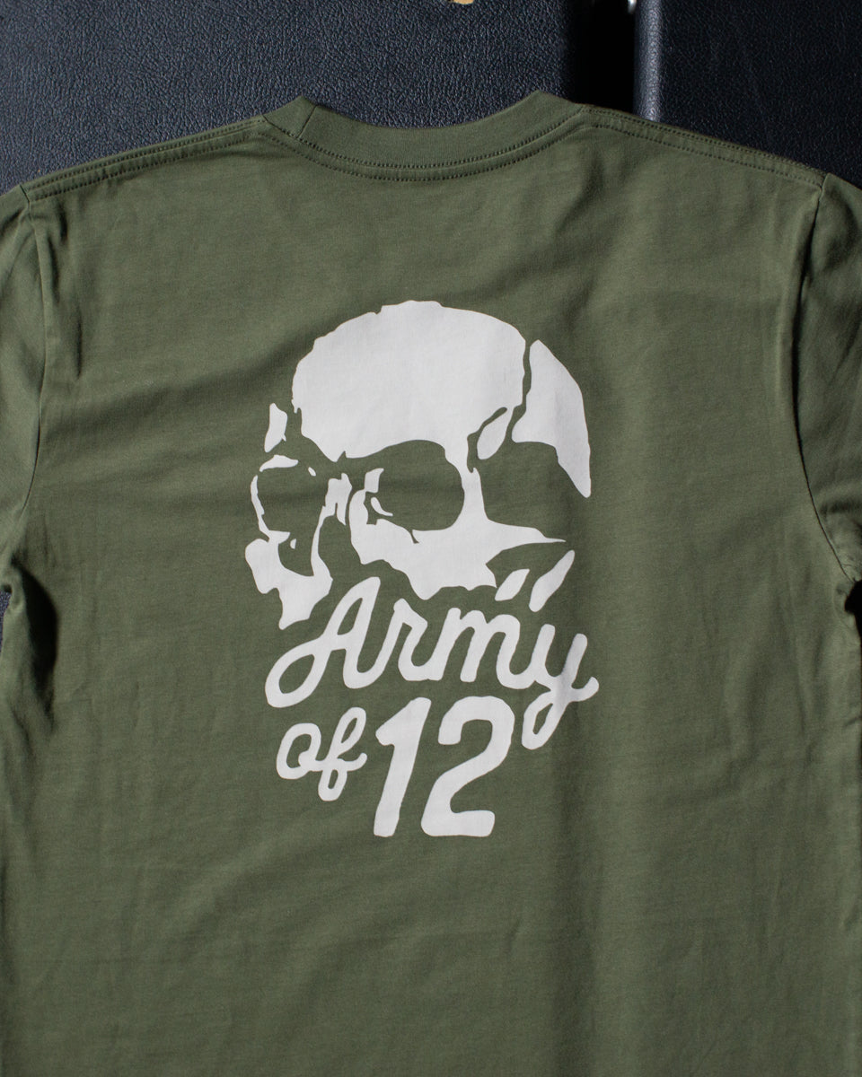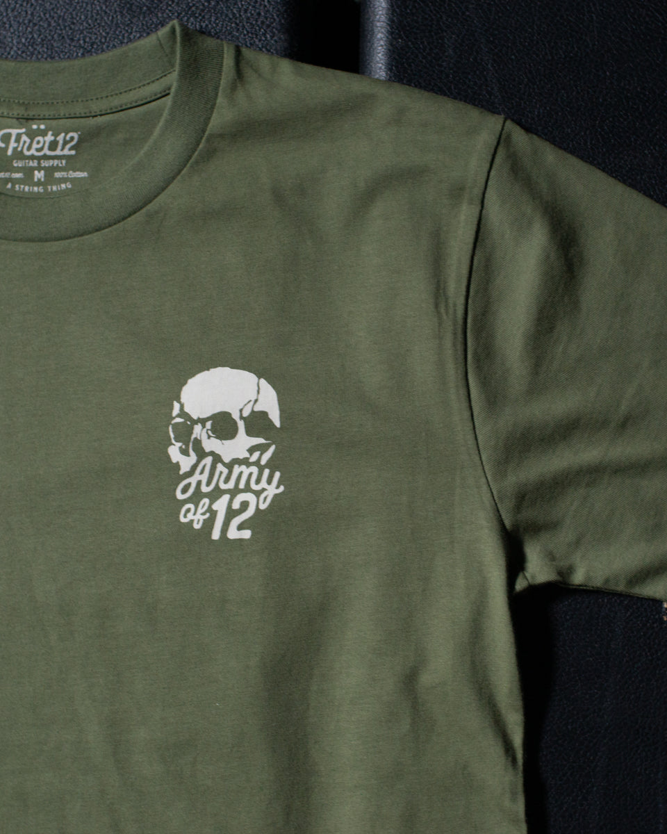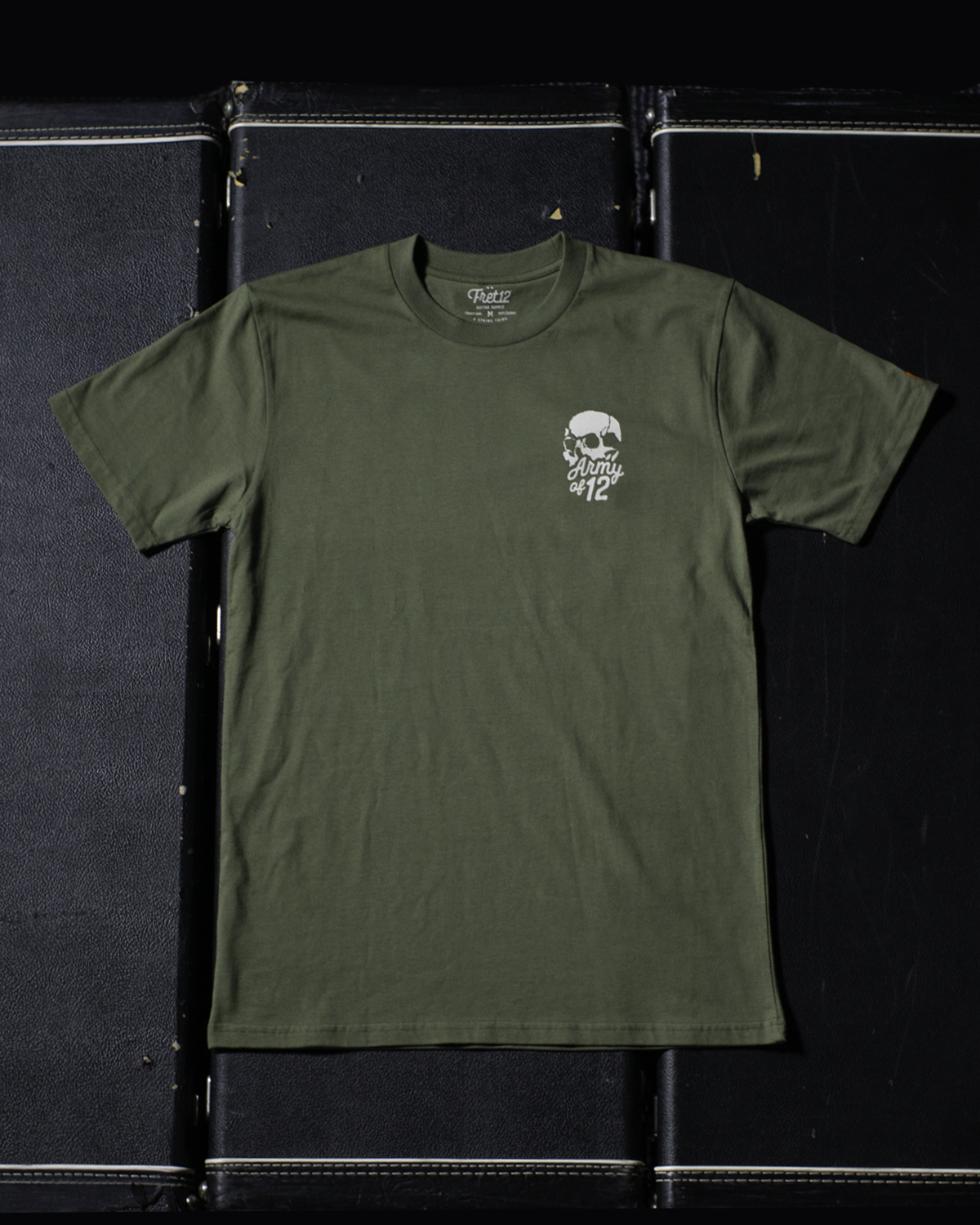 Commissioned in 2012, the Army of 12 is the headquarters for tens of thousands of passionate music fans around the world. Get your hands on an old-school FRET12 classic. Mid-weight cotton tee in black and white.