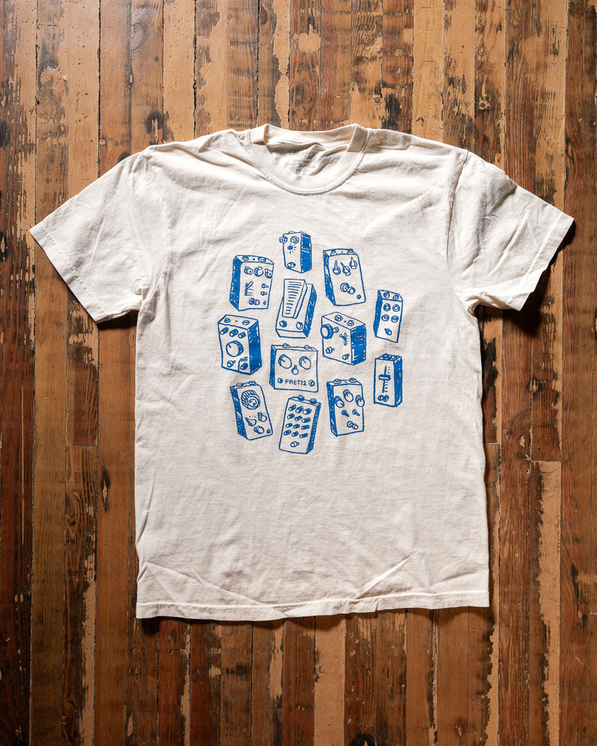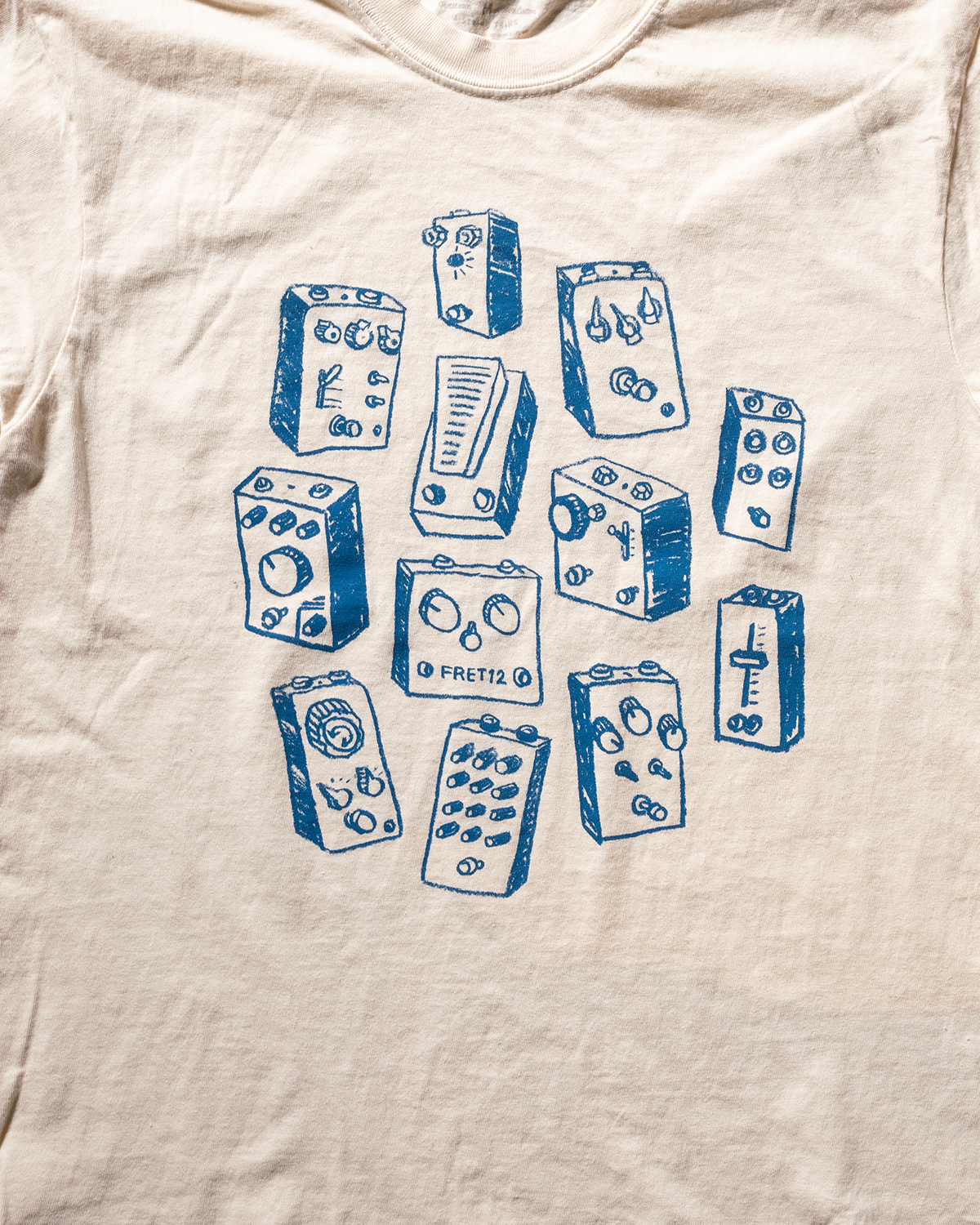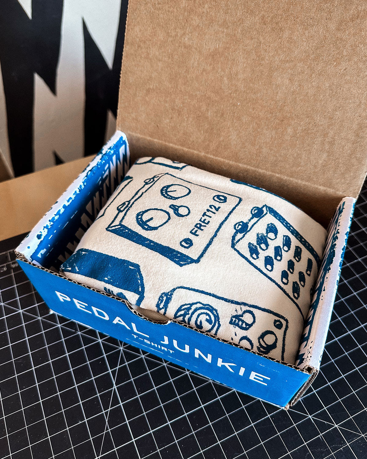 To build an effects pedal is to imagine a sound that you alone can hear and render it in reality. To take an idea from the brain and capture it in a box takes experimentation, an obsessive attention to detail, and an uncompromising vision to replicate the exact tone you’re looking for. That’s the process we’ve emulated for our new run of Pedal Junkies tee — from the design to the printing to the packaging itself, it’s a tribute to the DIY stompboxers and mad scientists who take the sounds in their head and turn it into hardware.