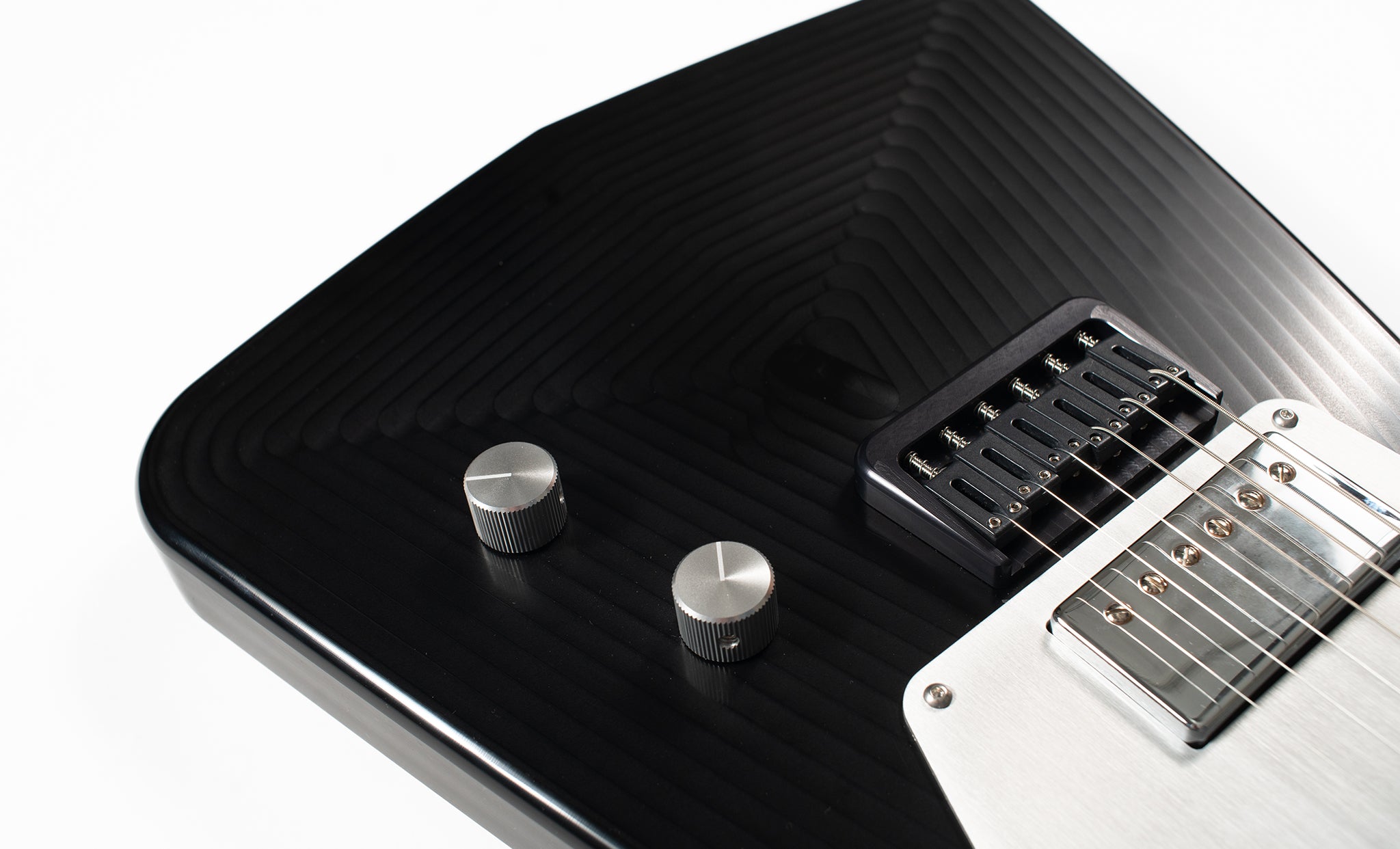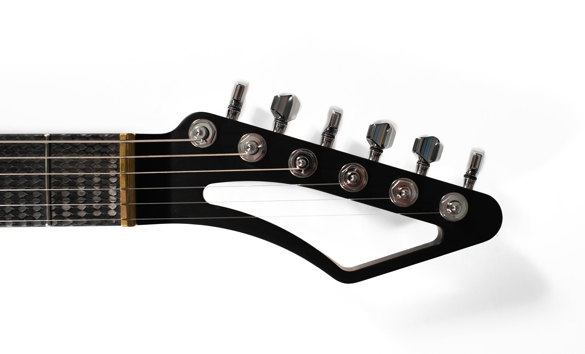 The Orion Eclipse is the stealthy, blacked-out version of the Aluminati Orion Series. Stealthy and highly refined, the Eclipse Edition Orion comes with a black anodized neck, pickguard, bridge and tuners, all on a menacing black body built from Lucite.