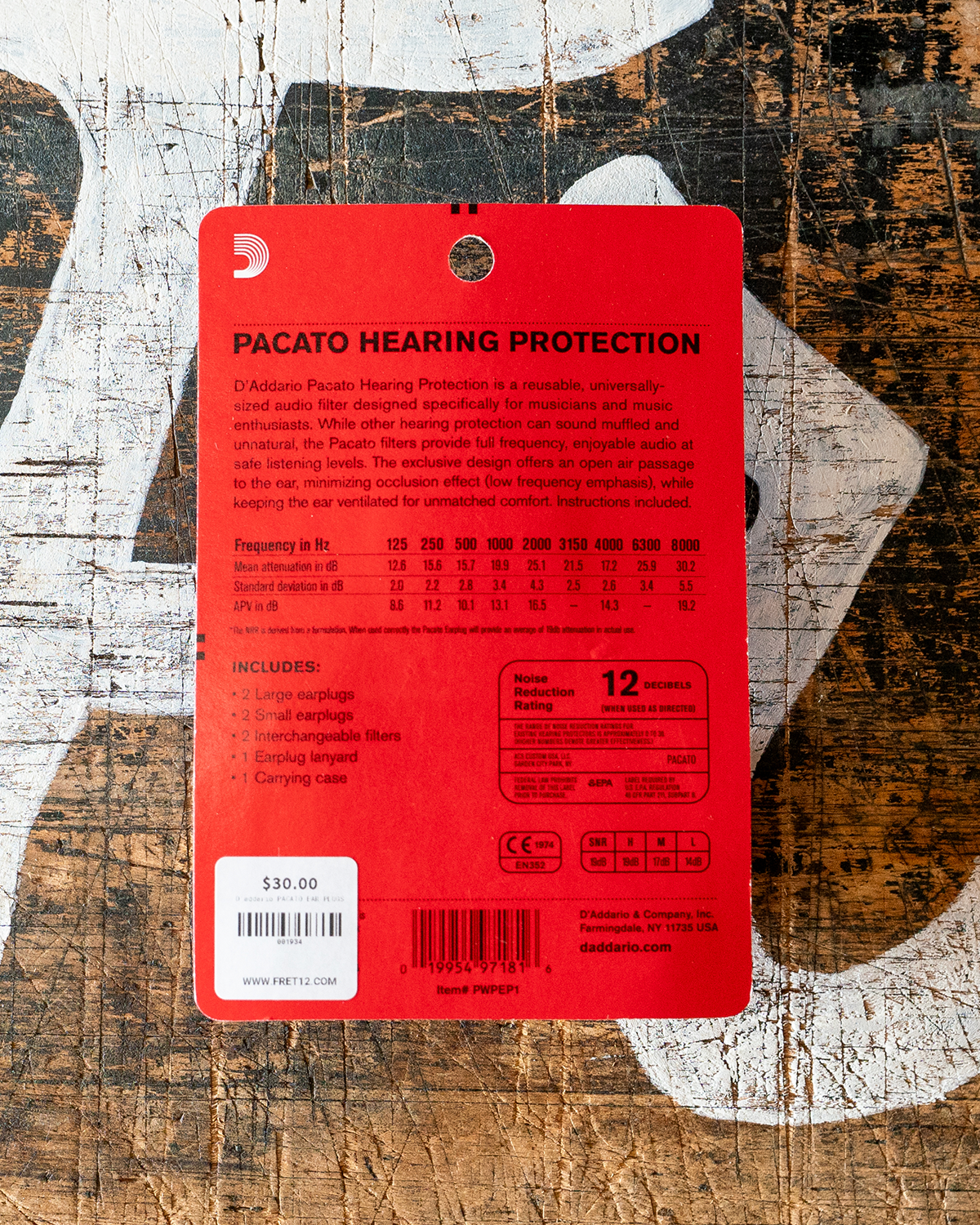 D'Addario Pacato hearing protection is a reusable, universal sized audio filter designed specifically for musicians and music enthusiasts. While traditional earplugs can sound muffled and unnatural, the Pacato filters provide full frequency, enjoyable audio at safe listening levels. The exclusive design offers an open air passage to the ear, minimizing occlusion effect (low frequency emphasis), while keeping the ear ventilated for unmatched comfort.