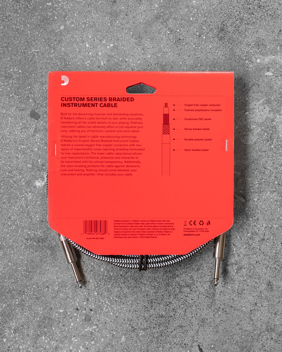 Utilizing the latest in cable manufacturing technology, D’Addario’s Custom Series Braided Instrument Cables feature a coaxial oxygen-free copper conductor with two layers of impenetrable noise-rejecting shielding formulated for low capacitance. The lower cable capacitance allows your instrument’s brilliance, presence and character to be transmitted with the utmost transparency. Additionally, the nylon braiding protects the cable against abrasions, cuts and kinking. Nothing should come between your instrument and amplifier—including your cable.