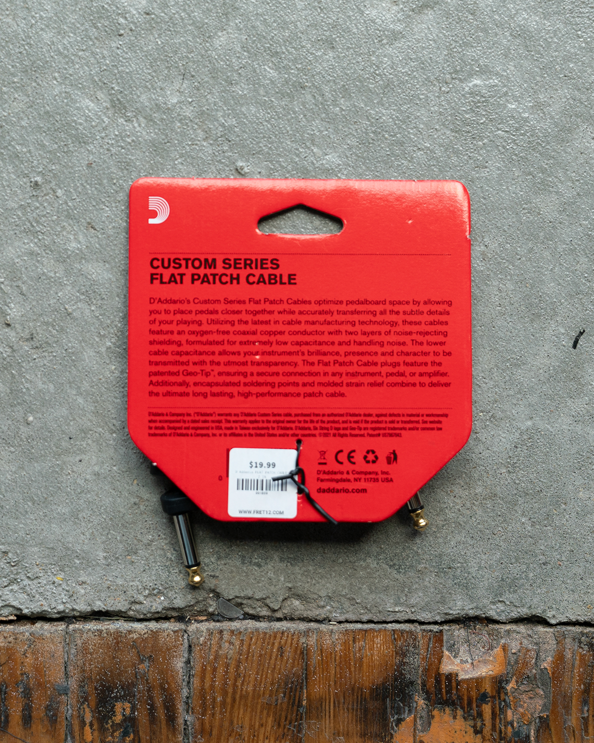 D’Addario’s Custom Series Flat Patch Cables help you optimize pedalboard space by allowing closer pedal placement while accurately transferring the subtle details of your sound. These cables have an oxygen-free coaxial copper conductor with two layers of noise-rejecting shielding, formulated for extremely low capacitance, so your instrument’s brilliance, presence, and character transmit with the utmost transparency. The Flat Patch Cable plugs feature the patented Geo-Tip, which ensures a secure connection with any instrument, pedal, or amplifier. Encapsulated soldering points and molded strain relief combine to deliver the ultimate long-lasting, high performance patch cable.