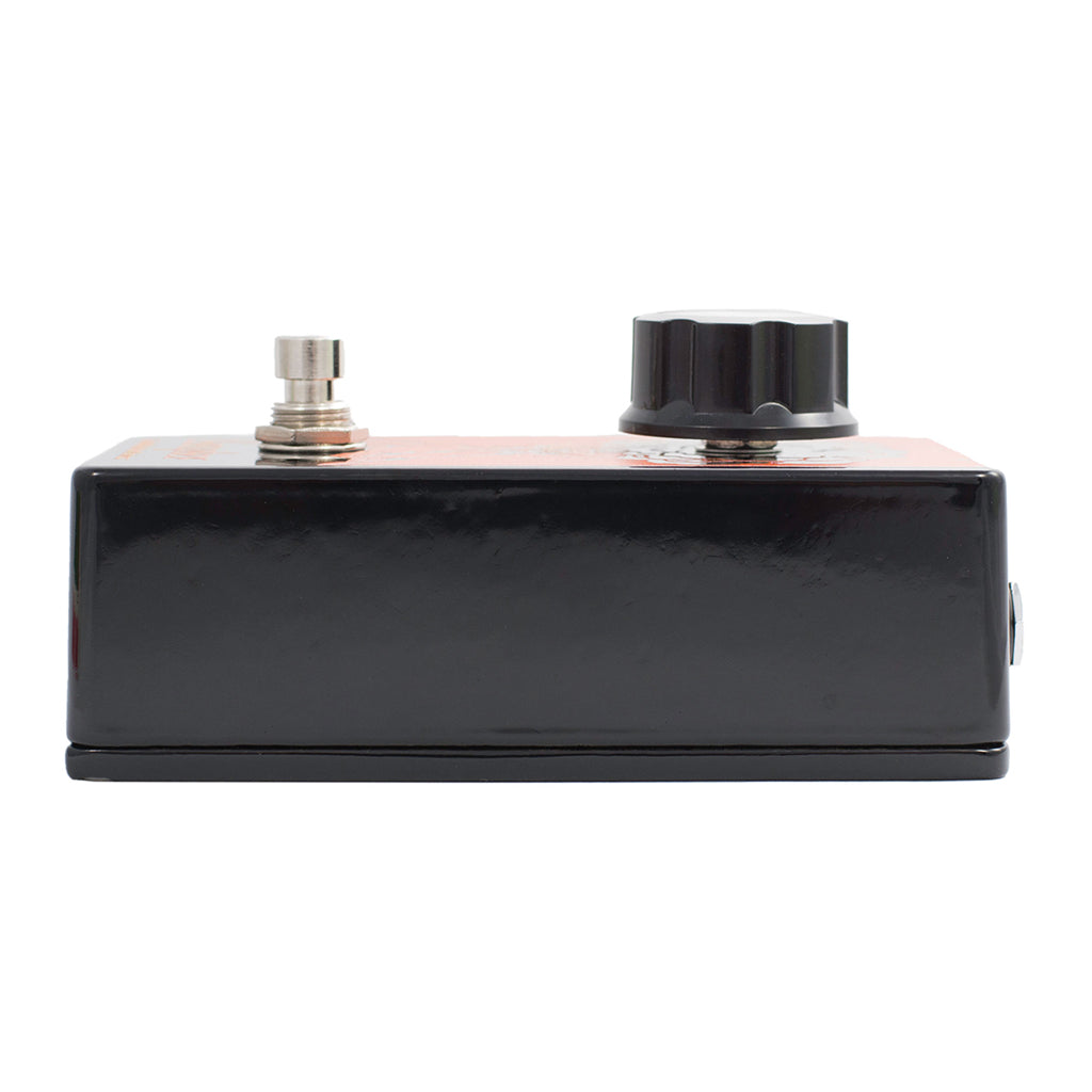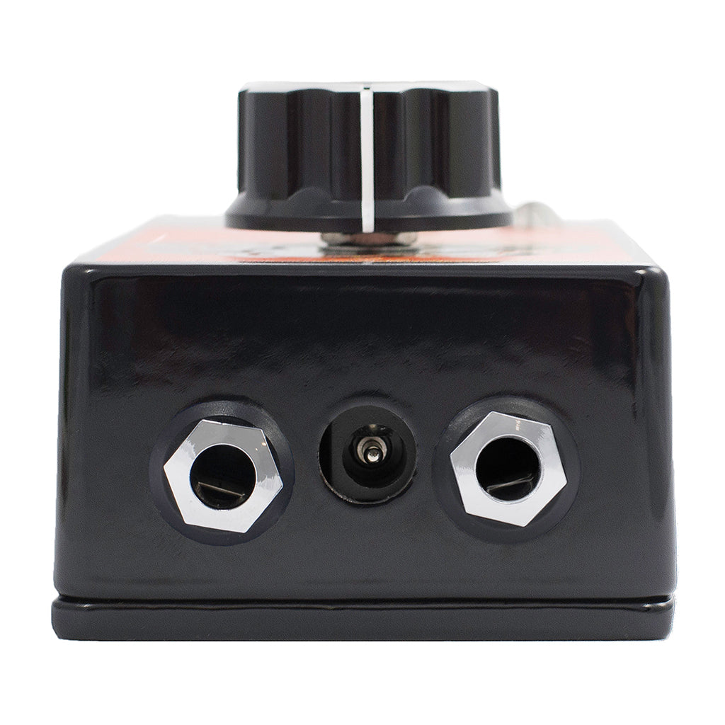 We had a custom center-detent pot made to fit the required resistance for the Erupter. When the Bias control is set at noon you will feel a little click. That means the pedal is perfectly biased to give the best possible fuzz tone. As you turn the Bias counterclockwise (colder) the fuzz lowers in level and becomes more gated. As you turn the Bias clockwise (hotter), the fuzz becomes cleaner and more refined and the output level increases.