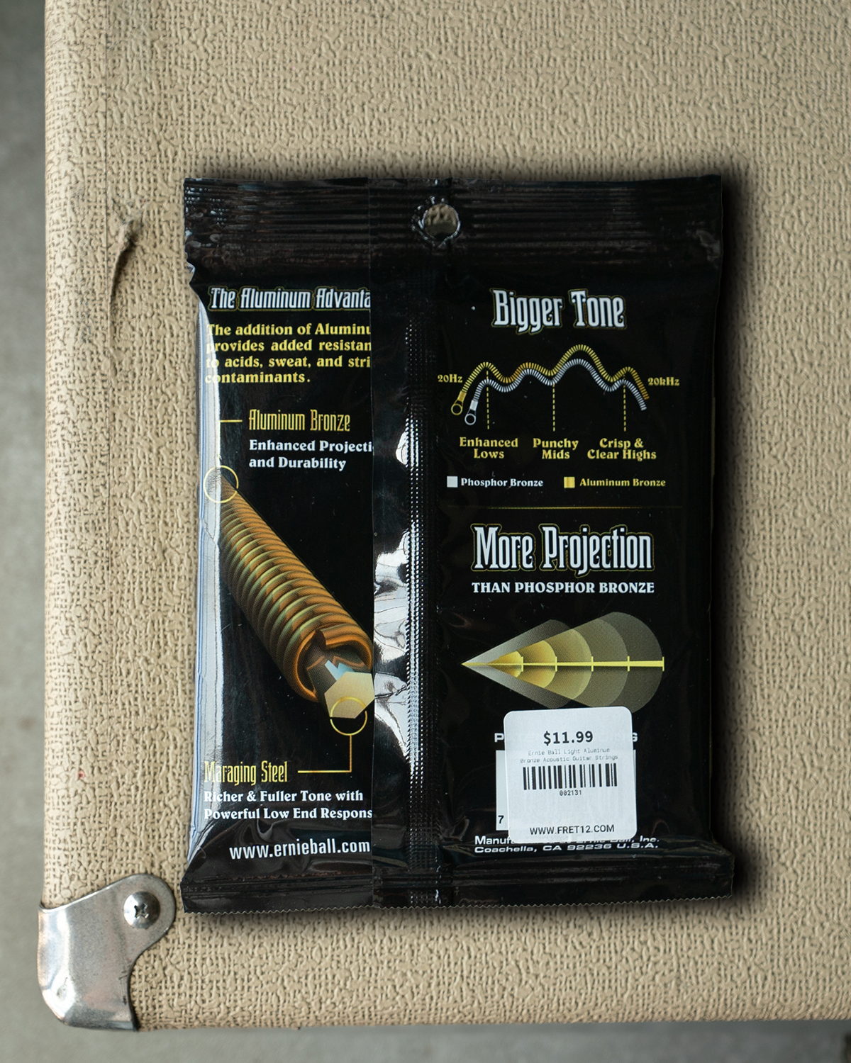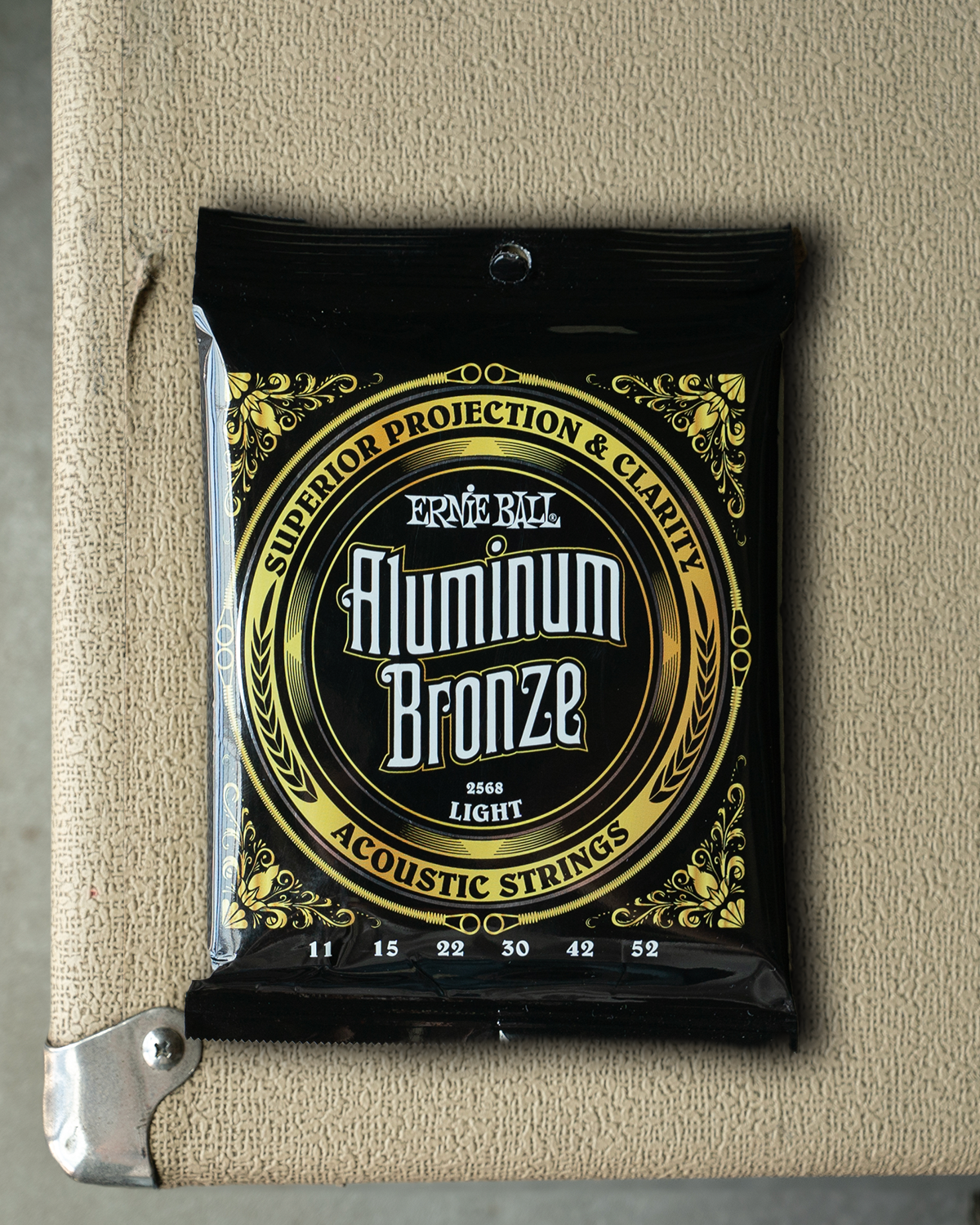 Ernie Ball Aluminum Bronze Acoustic Guitar Strings feature more projection and clarity than traditional bronze strings, while also providing improved corrosion resistance. Aluminum Bronze Acoustic strings are made with Ernie Ball Maraging Steel hex cores and Aluminum Bronze wrap wire which provide more pronounced lows coupled with crisp brilliant highs. Made from a blend of copper and aluminum specifically tailored for acoustic guitar strings.