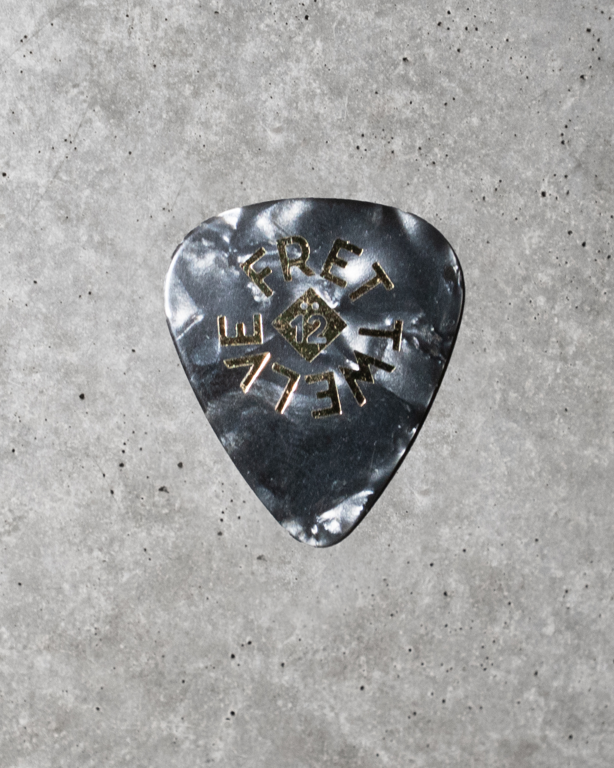 A 6-pack of premium FRET12 Bullet Logo guitar picks.