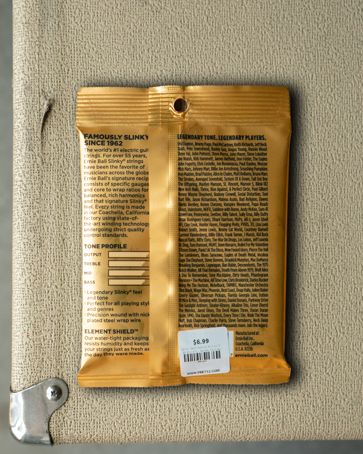 Ernie Ball Nickel Wound Electric Guitar Strings are made from nickel plated steel wire wrapped around tin plated hex shaped steel core wire. The plain strings are made of specially tempered tin plated high carbon steel producing a well balanced tone for your guitar.