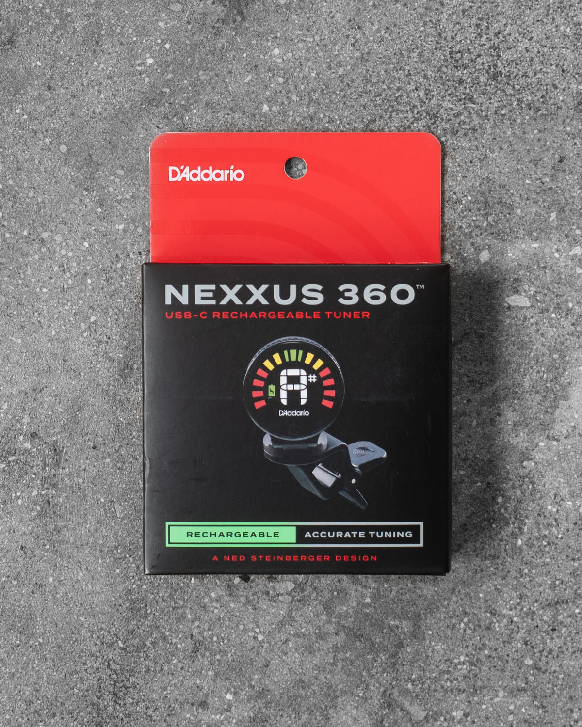 D’Addario’s rechargeable Nexxus 360™ Tuner offers fast, accurate tuning without the cost and hassle of replacing batteries. The discreet, clip-on design features 360-degree rotation, plus a super bright, full color LED display, assuring a perfect viewing angle and screen clarity in any lighting. Simply plug the supplied USB-C cable into any USB-C power device as needed and enjoy 24 hours of tuning time per charge.