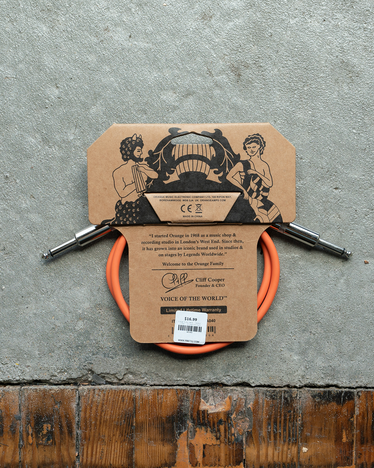 Why use that boring no-name cable when you can add some much-needed British flair to your floorboard? Orange infused their new cable lineup with the same level of quality and outstanding design that lives within their world-renowned amps. Orange's rugged cables are made from high-grade, oxygen-free copper for superior signal clarity. Hand-soldered, nickel-plated ¼-inch jacks ensure top-notch corrosion resistance and stellar conductivity. Multiple layers of shielding decrease handling noise and electromagnetic interference, making sure your signal stays pure and intact. In addition, heat-shrunk outer sleeves adorned with a fab-fonted Orange logo on each end mean this cable is built to withstand the rigors of use night after night.