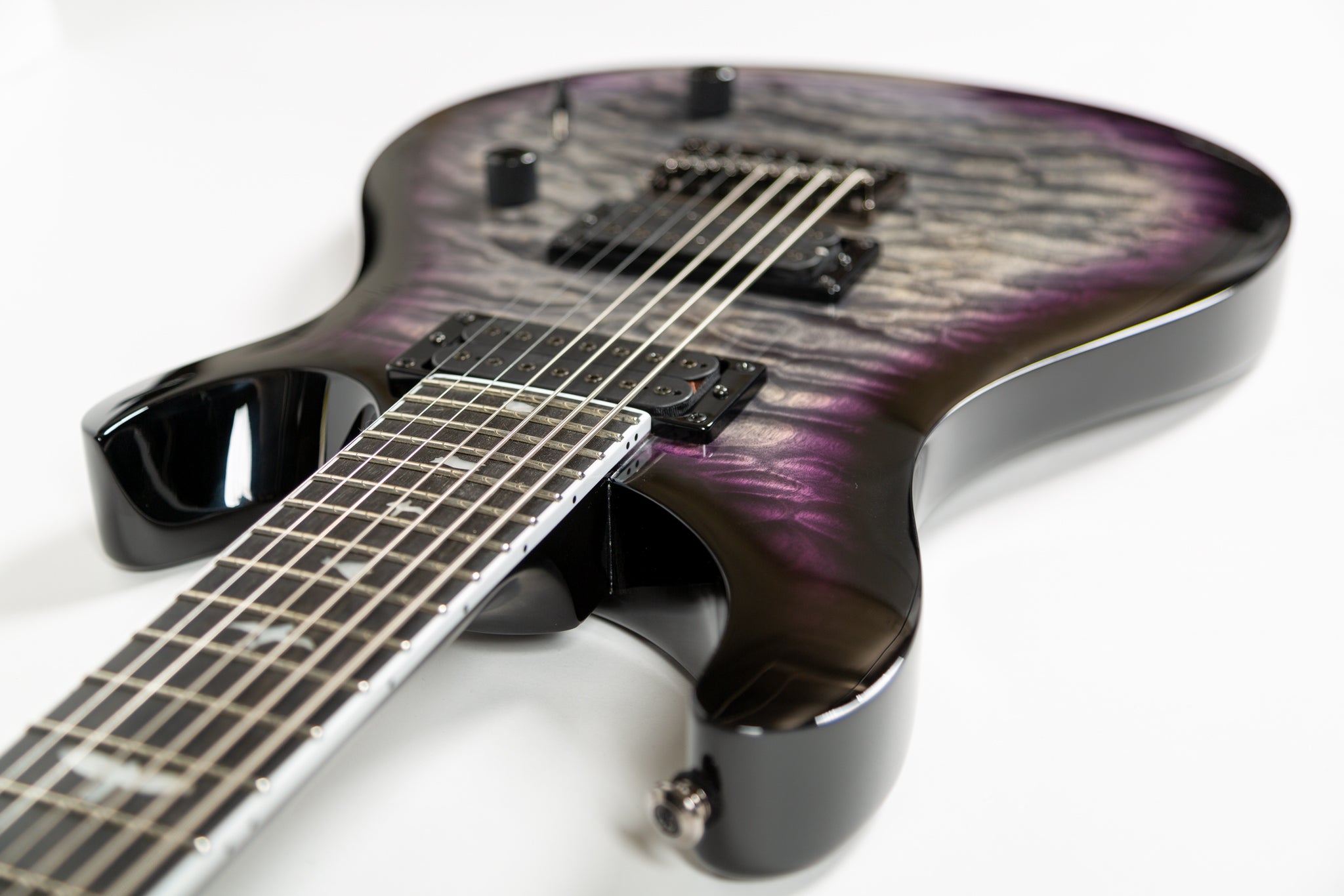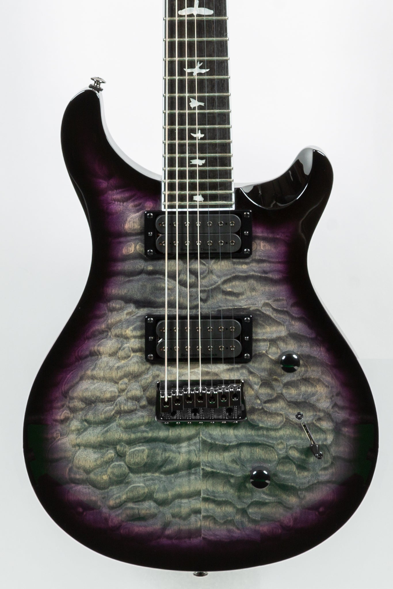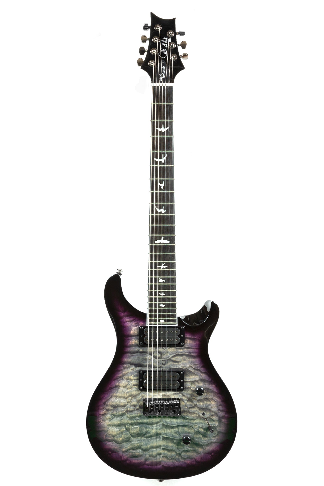 The SE Mark Holcomb SVN model truly stands on its own in the PRS lineup and delivers addictive playability thanks to some unique specifications, including a 24-fret, 26.5” scale length, wide thin satin maple neck with 20” radius ebony fretboard. Holcomb’s signature Seymour Duncan Alpha and Omega 7-string pickups provide the right amount of output and articulation whether you’re playing sophisticated chords or solos and whether you’re playing alone or working in the mix of a band. Other specifications include black hardware, a 3-way blade pickup switch with push/pull tone knob for coil splitting, and the choice of a quilted maple or walnut veneer. The model is topped off with coil-taps for the pickups and a string-through, plate-style, 7-string bridge.