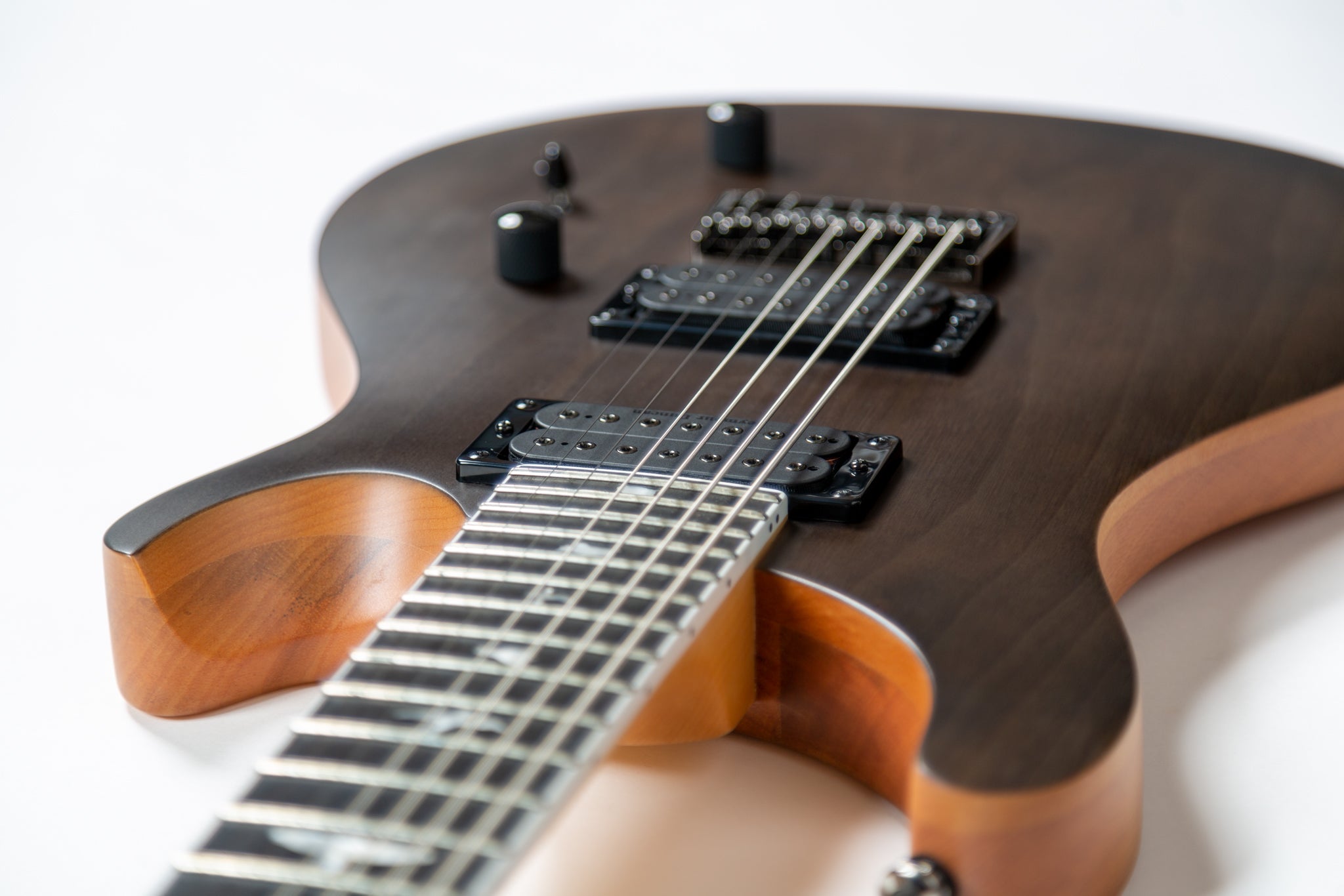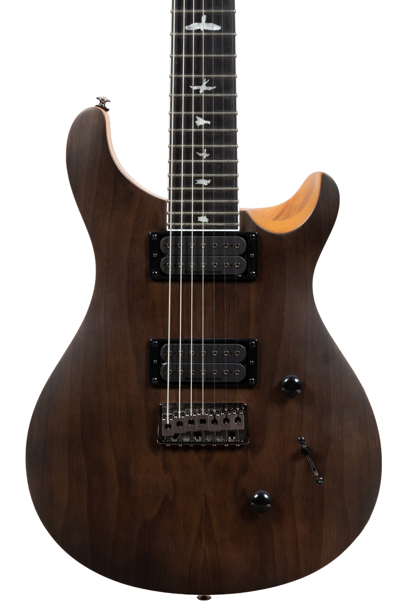 The SE Mark Holcomb SVN model truly stands on its own in the PRS lineup and delivers addictive playability thanks to some unique specifications, including a 24-fret, 26.5” scale length, wide thin satin maple neck with 20” radius ebony fretboard. Holcomb’s signature Seymour Duncan Alpha and Omega 7-string pickups provide the right amount of output and articulation whether you’re playing sophisticated chords or solos and whether you’re playing alone or working in the mix of a band. Other specifications include black hardware, a 3-way blade pickup switch with push/pull tone knob for coil splitting, and the choice of a quilted maple or walnut veneer. The model is topped off with coil-taps for the pickups and a string-through, plate-style, 7-string bridge.