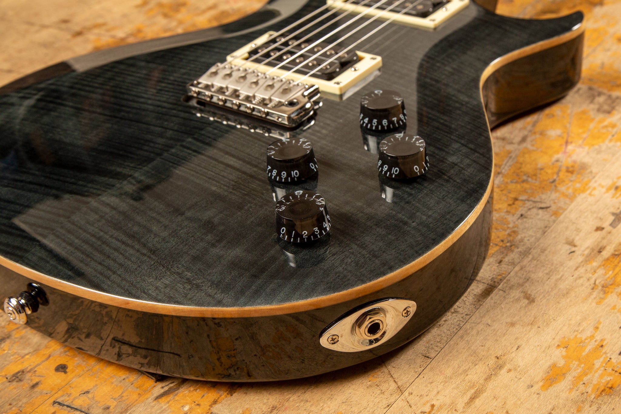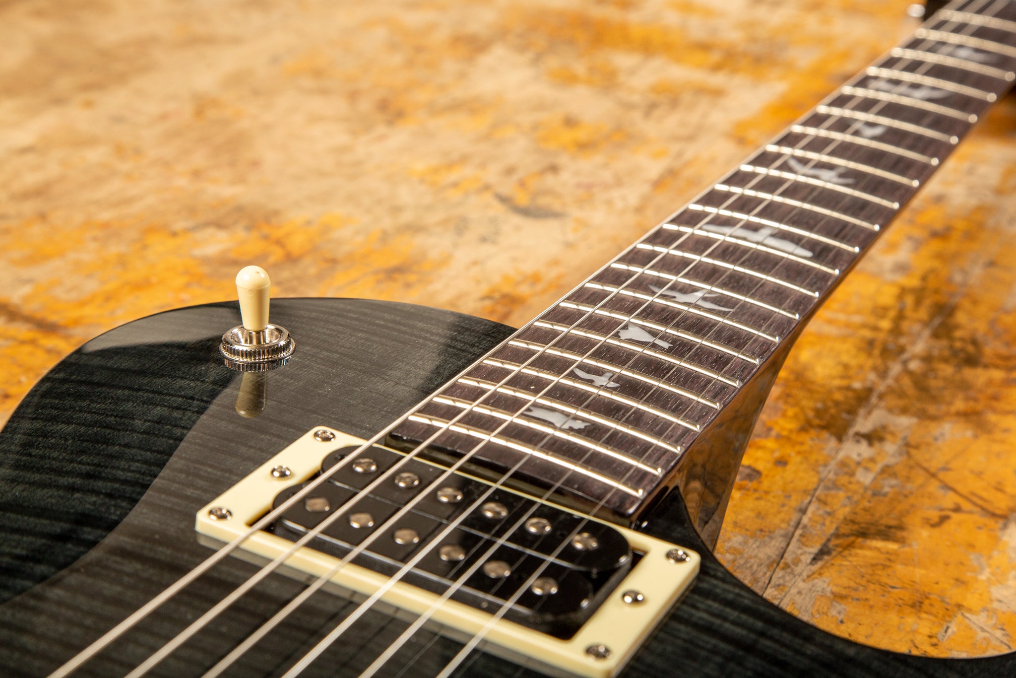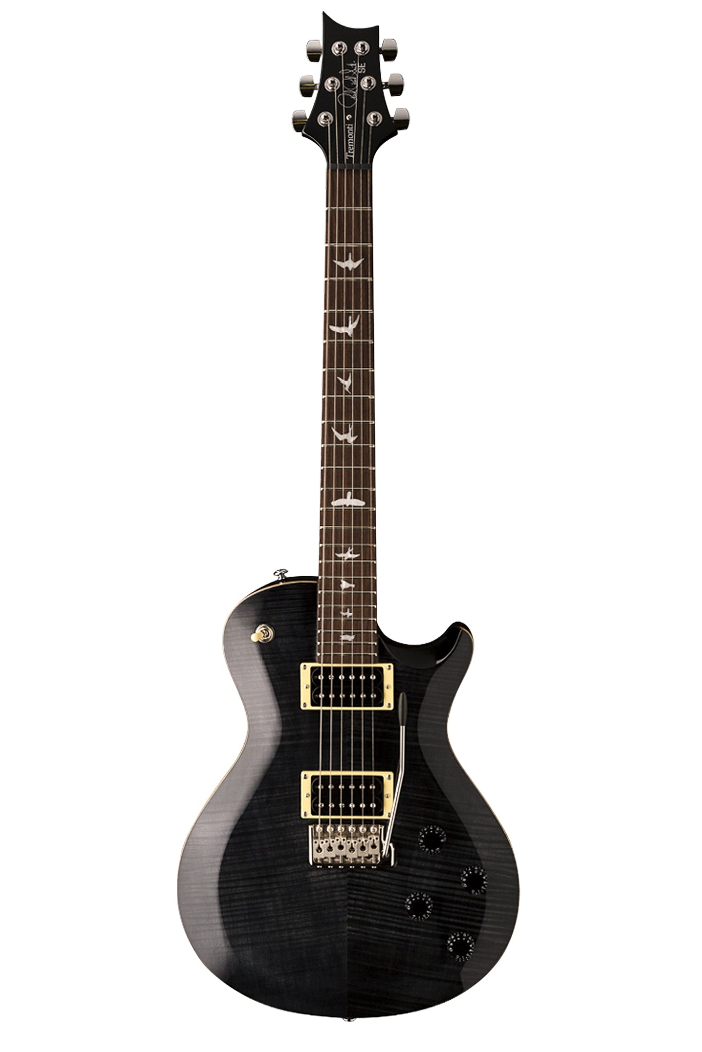 In 2013, PRS launched the Tremonti SE Custom, which would bring many of the latest and greatest features of the Dimebag PRS to the SE price point. The Tremonti SE Custom offered the iconic single-cut look, with a floating trem (with up-routing), Tremonti SE pickups, a much thicker and heavier body with contoured flamed maple top in transparent gray/black charcoal, paired with an updated wide/thin neck, rosewood fingerboard, and even the iconic PRS bird inlays! With all of these features packed into a guitar for around $700, the Tremonti SE Custom quickly broke records as one of the ultimate values of all time.