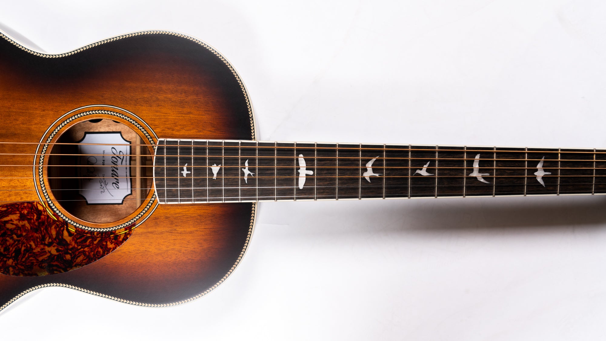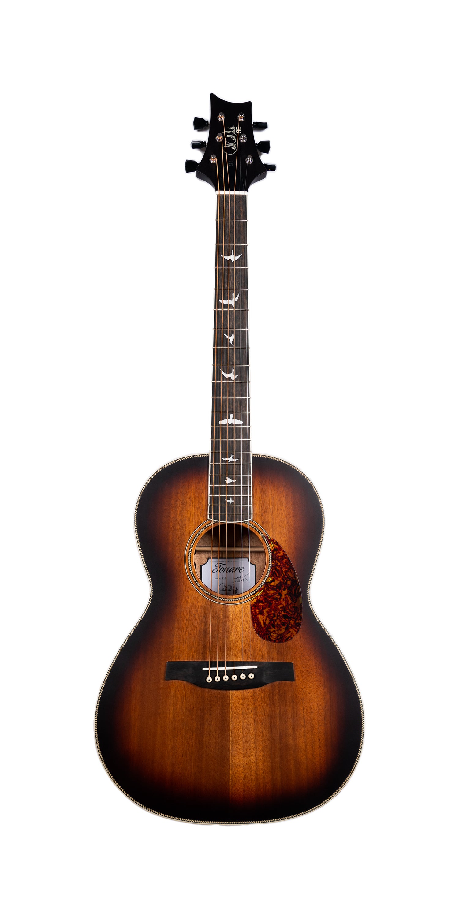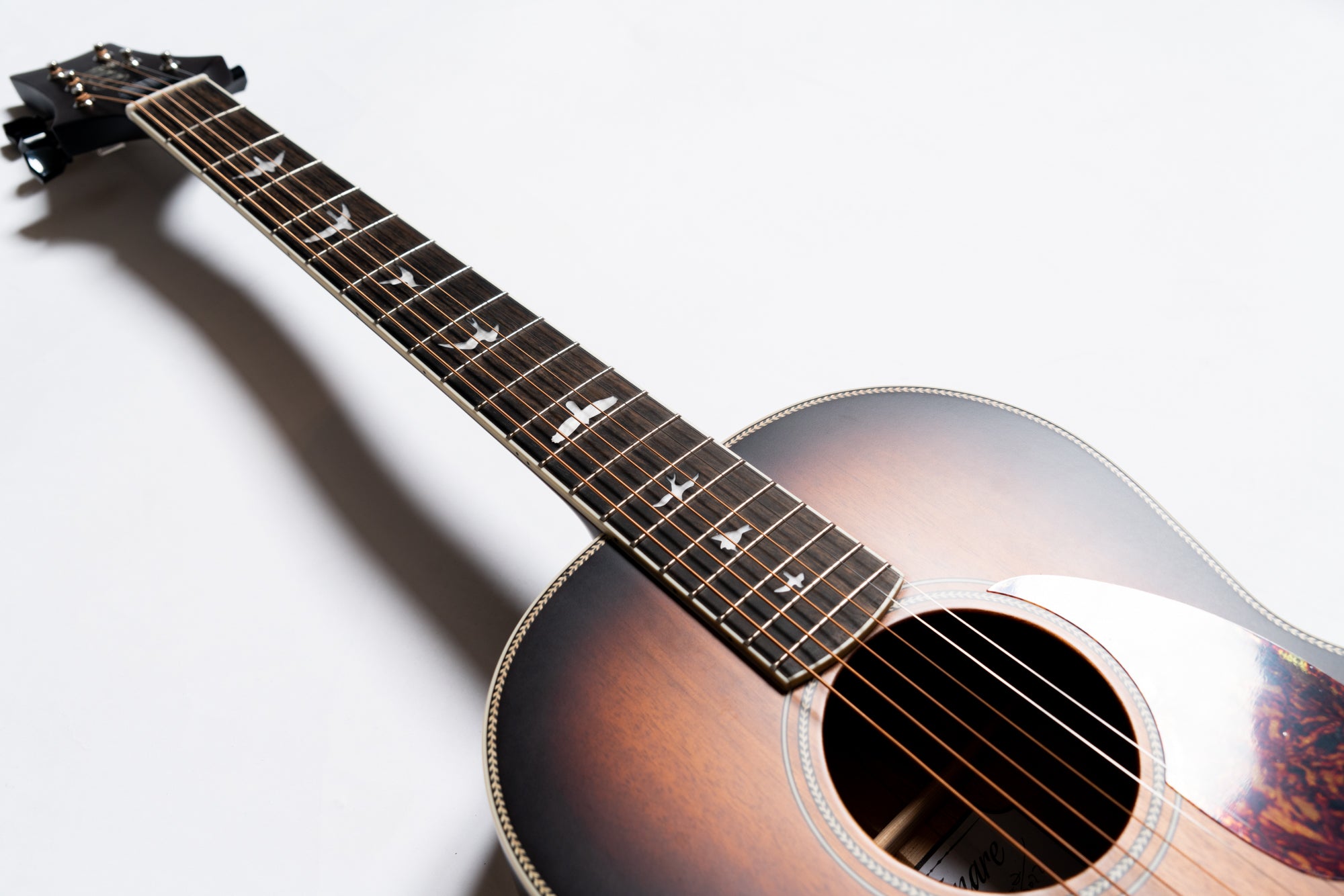 Available in three satin finishes with herringbone rosettes and accents, PRS SE Parlor acoustics look as good as they sound. Other high-quality features include a solid mahogany top, ebony fretboard and bridge, bone nut and saddle, as well as PRS trademark bird inlays and headstock design. PRS SE Parlor acoustics come with a gig bag and are strung with 12-53 strings.