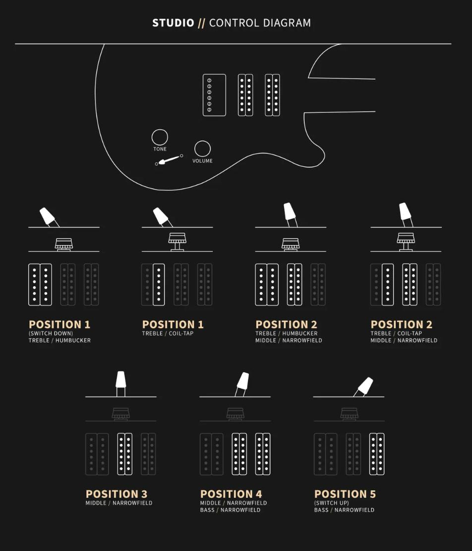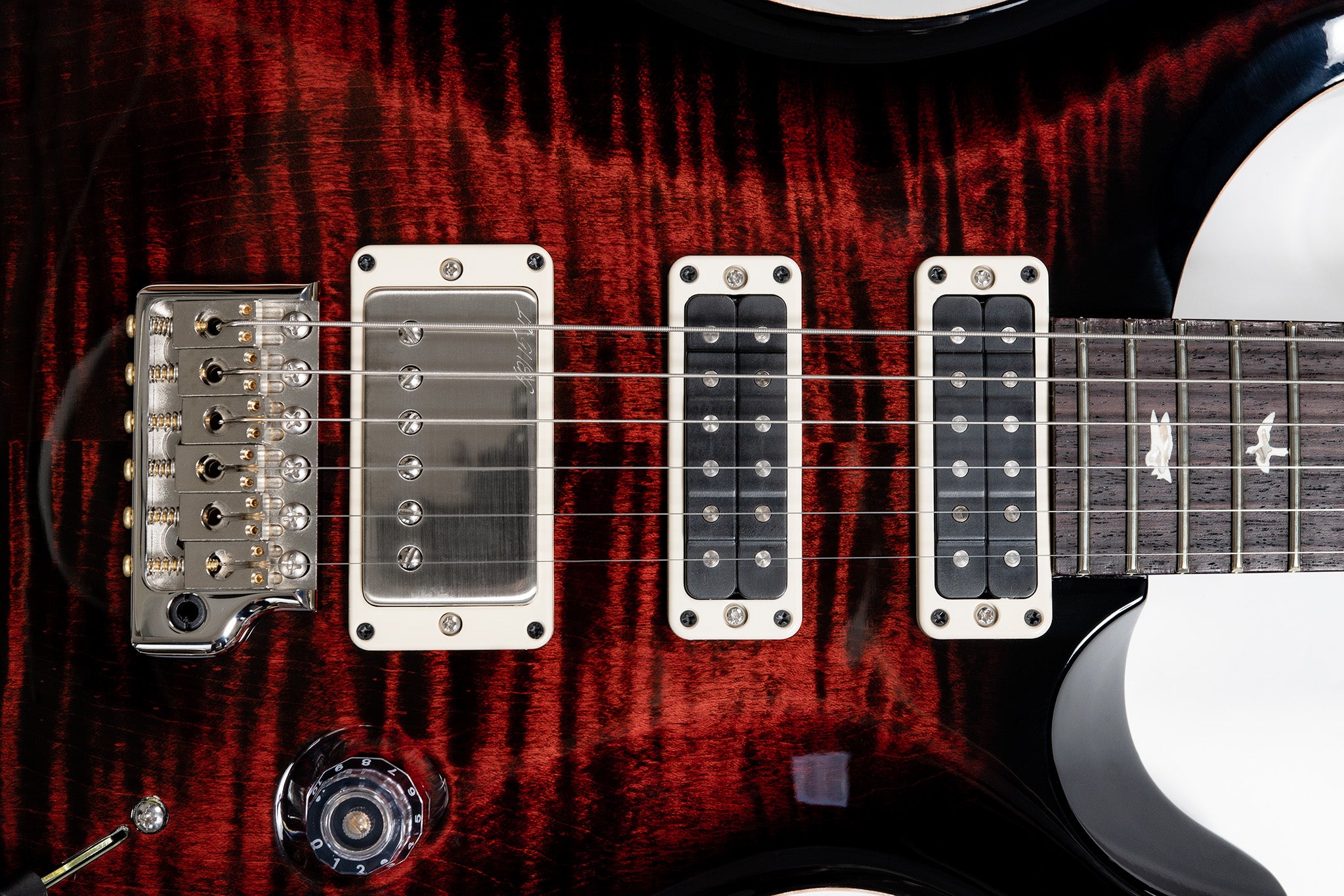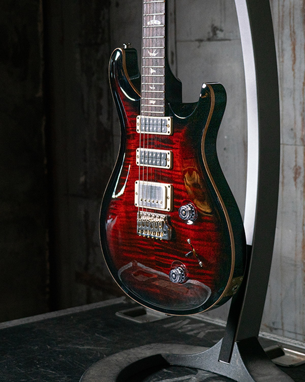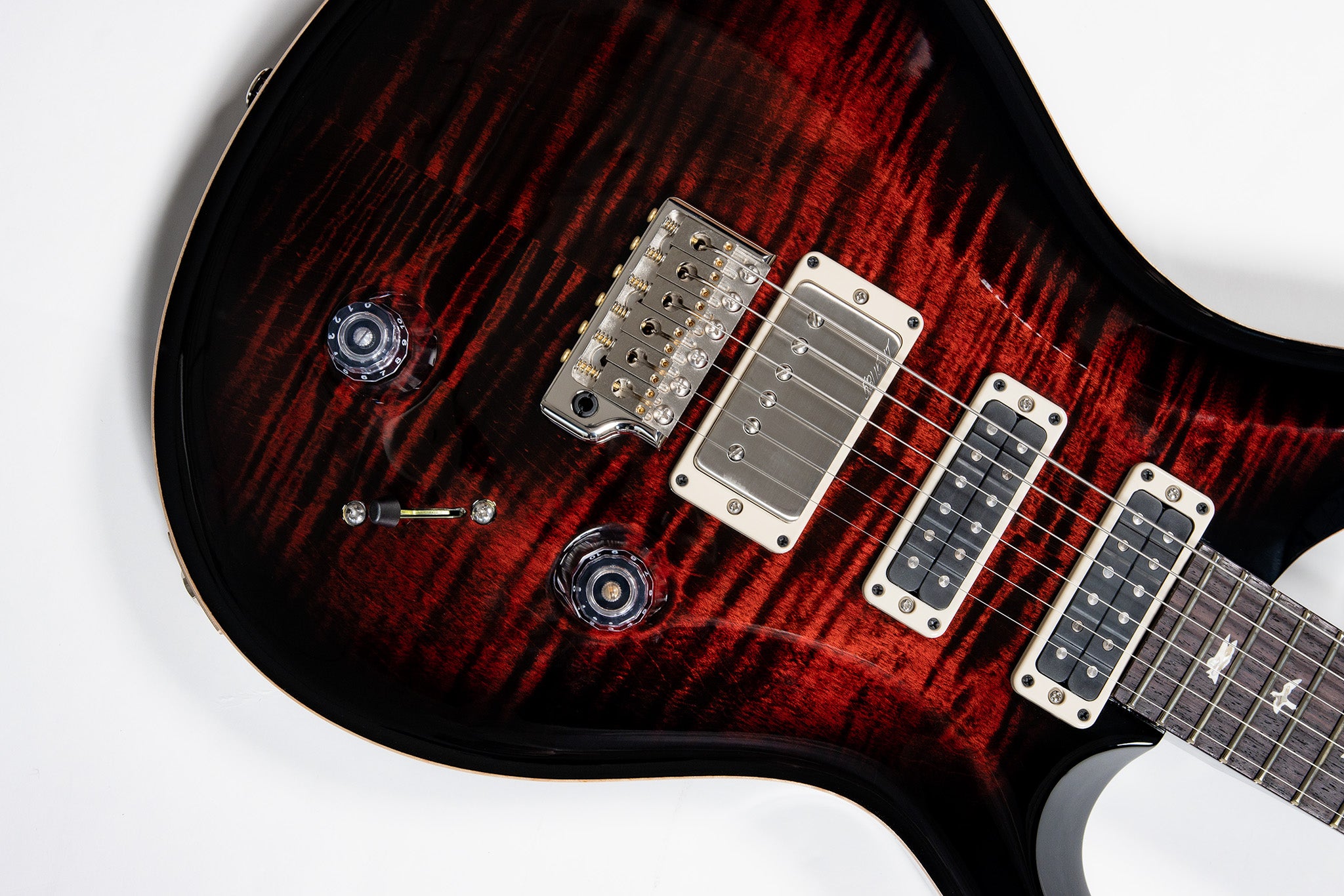 The PRS Studio model is a modern take on a traditional single-single-hum guitar. With PRS’s proprietary Narrowfield pickups in the middle and bass positions and a 58/15 LT humbucking treble pickup, the PRS Studio offers punchy singlecoils, vintage scooped tones, and the chunky kick of a treble humbucker screaming in one instrument. This whole new scope of sounds (that are only possible with a three-pickup guitar) are easily accessible in the Studio model thanks to the push/pull tone control and 5-way blade switch. With seven combinations in all, the PRS Studio covers classic tones but maintains a unique voice making it a perfect “desert island” guitar.