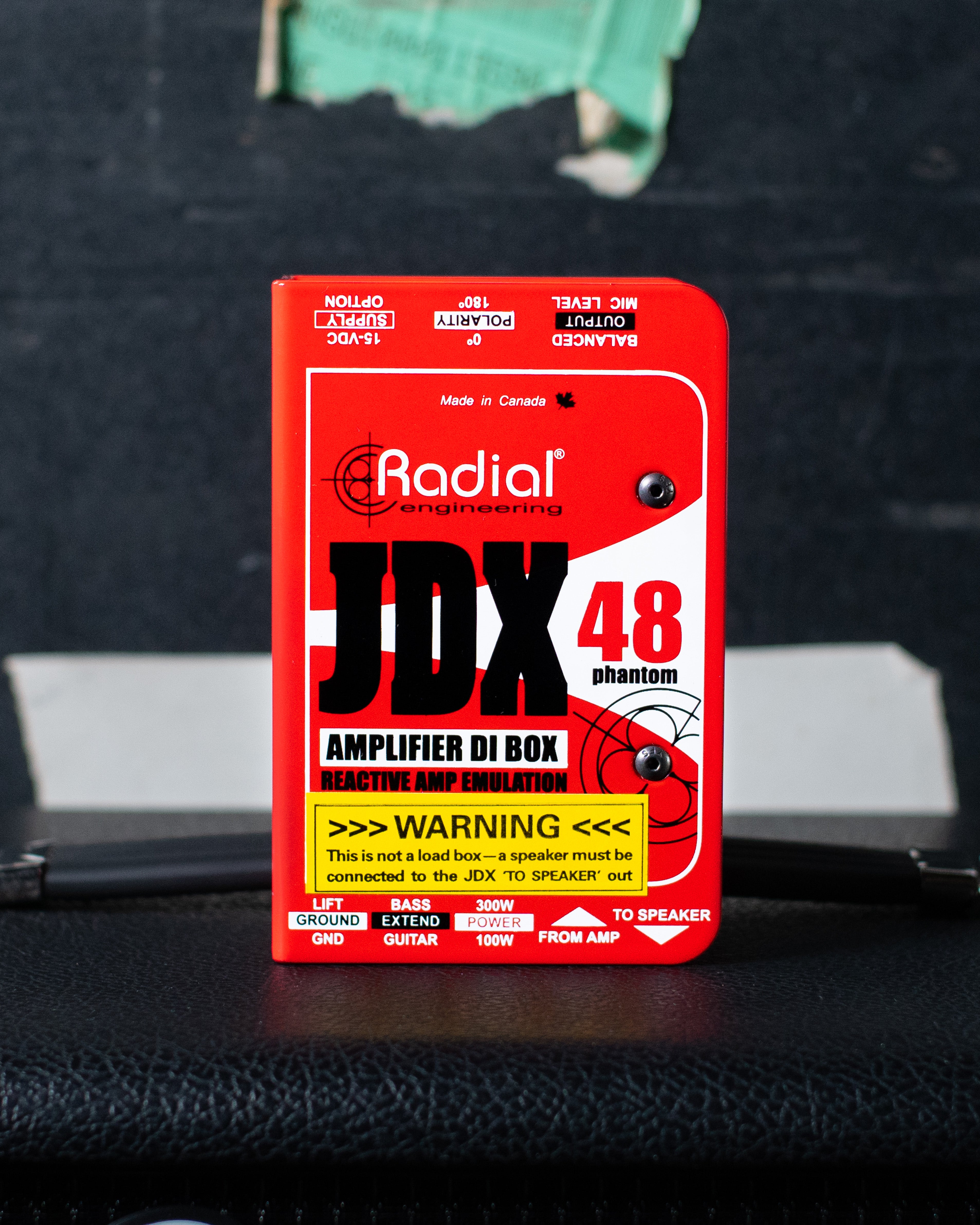 The JDX 48 makes it easy to get a consistent and natural amplifier tone through the PA system night after night, by taking a feed directly from your amplifier and employing Radial's popular JDX speaker emulation that produces an effect similar to placing a dynamic microphone in front of a 4x12 half stack cabinet. This gives you a more manageable sound onstage for gigs where feedback is an issue, or if mic'ing your amp isn't an option. For artists that employ in-ear monitoring systems, the JDX 48 provides consistent tone each night in the monitor mix for shorter setup times and a more comfortable audio feed for the artist.