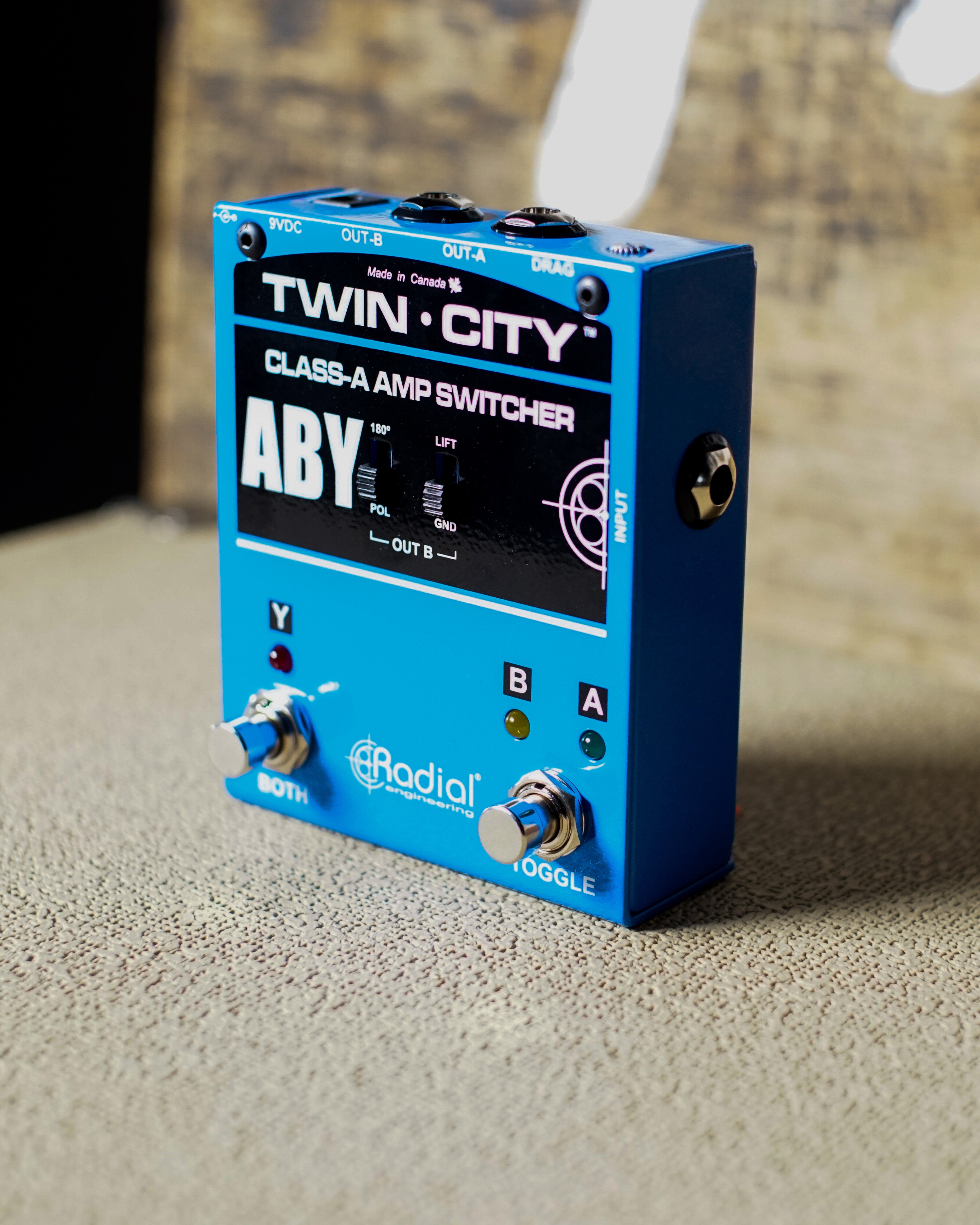 The Radial Twin-City uses a class-A input buffer to drive the amp outputs, which reduces susceptibility to noise and allows for completely silent switching on stage. To eliminate hum and buzz from ground loops, the Twin-City is equipped with an isolation transformer on output-B, along with a ground lift switch and 180⁰ polarity reverse switch that ensures both amplifiers play back in phase with each other. At the input, Drag Control load correction allows you to recreate the natural load on the pickups as if you were connected directly to a tube amplifier, allowing the natural tone of your instrument to shine through.