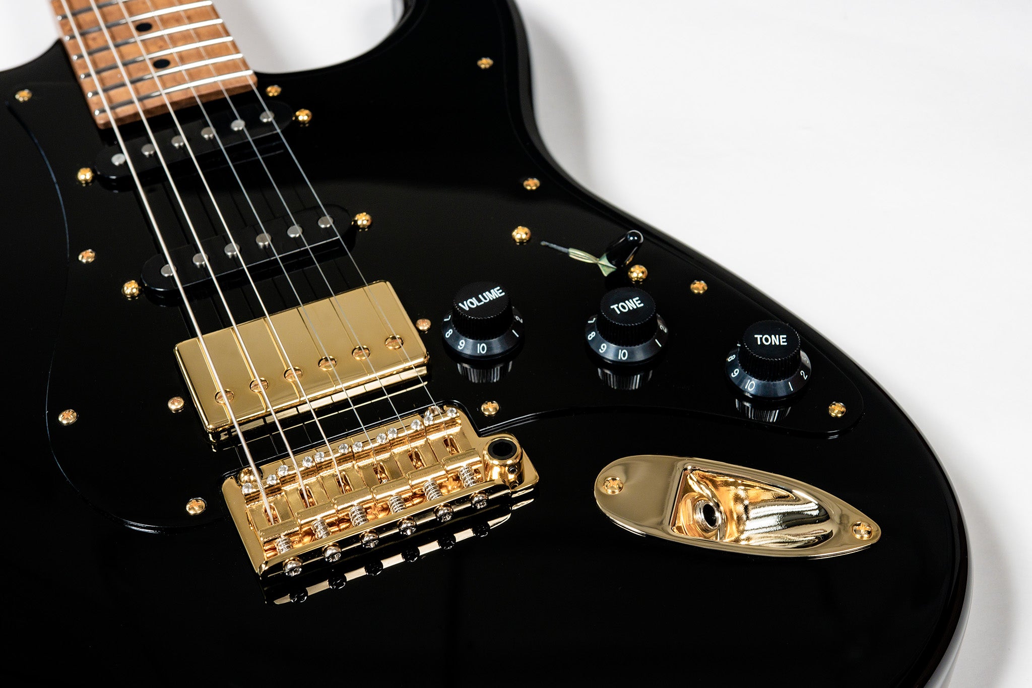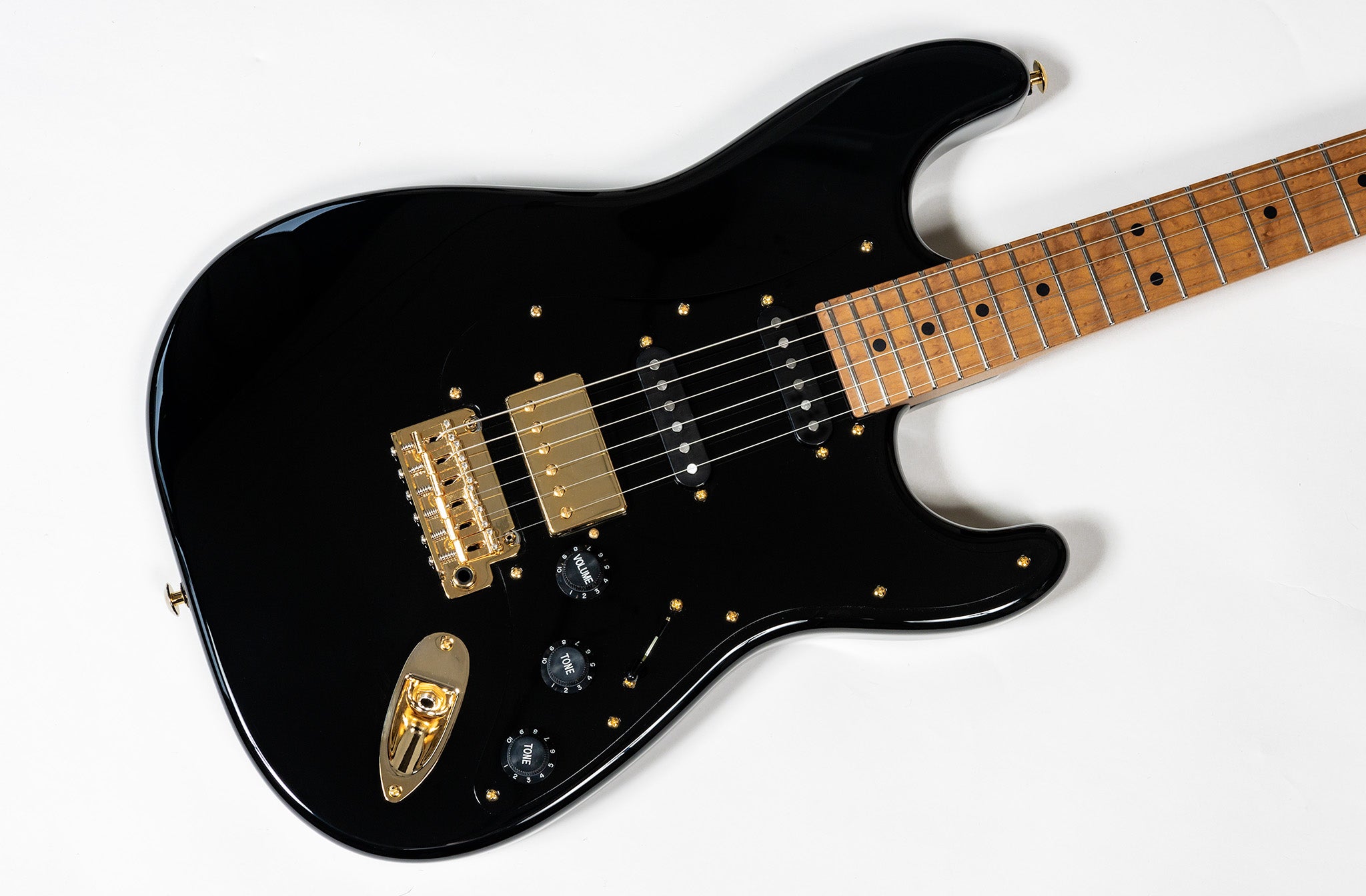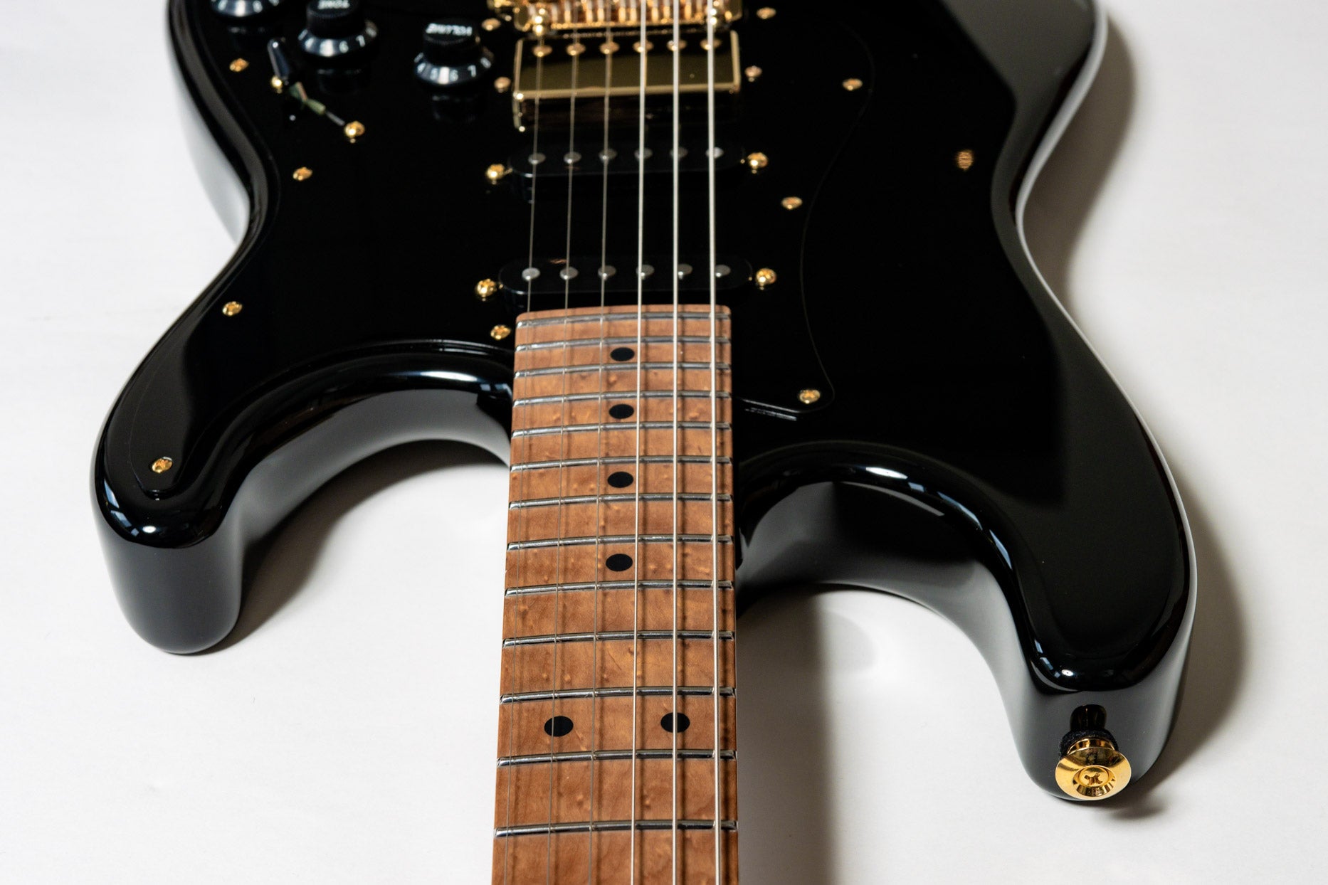 The Mateus Asato Signature Series is available in two finishes: Gloss Black and Antiqued Shell Pink. Both models feature our Even C Medium neck profile, which is carved from silky-smooth satin finished Roasted Maple. The Indian Rosewood fingerboard features our 9″-12″ compound radius and is appointed with 22 stainless steel heavy frets. A Gotoh 510 tremolo, V63+ single-coils, and Custom Alnico humbucker complete the specs. Each guitar comes with a special laser-engraved neck plate, Mateus’ signature on the back of the headstock, and is delivered in a classy black tolex hardshell case.