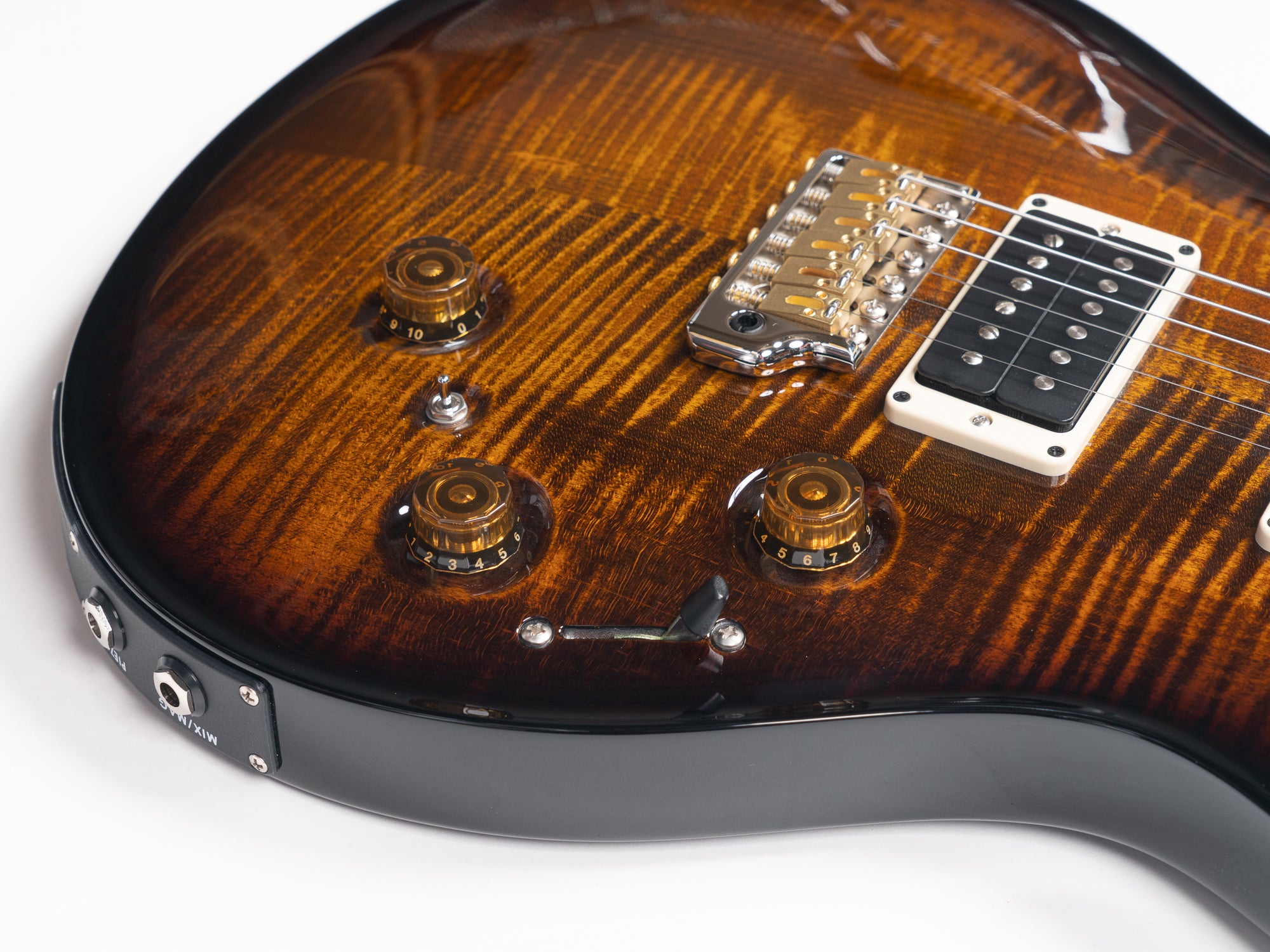 The Custom 24 is the quintessential PRS guitar. This iconic instrument was the first model that Paul Reed Smith brought to the public at PRS Guitars’ first Winter NAMM show in 1985 and has been a top seller ever since. Played by internationally touring artists, gigging musicians, and aspiring players, the Custom 24 features PRS’s patented Gen IIII tremolo system and PRS 85/15 pickups with volume and tone controls and a 5-way blade switch. 85/15 pickups were personally designed by Paul Reed Smith to offer remarkable clarity and extended high and low end.