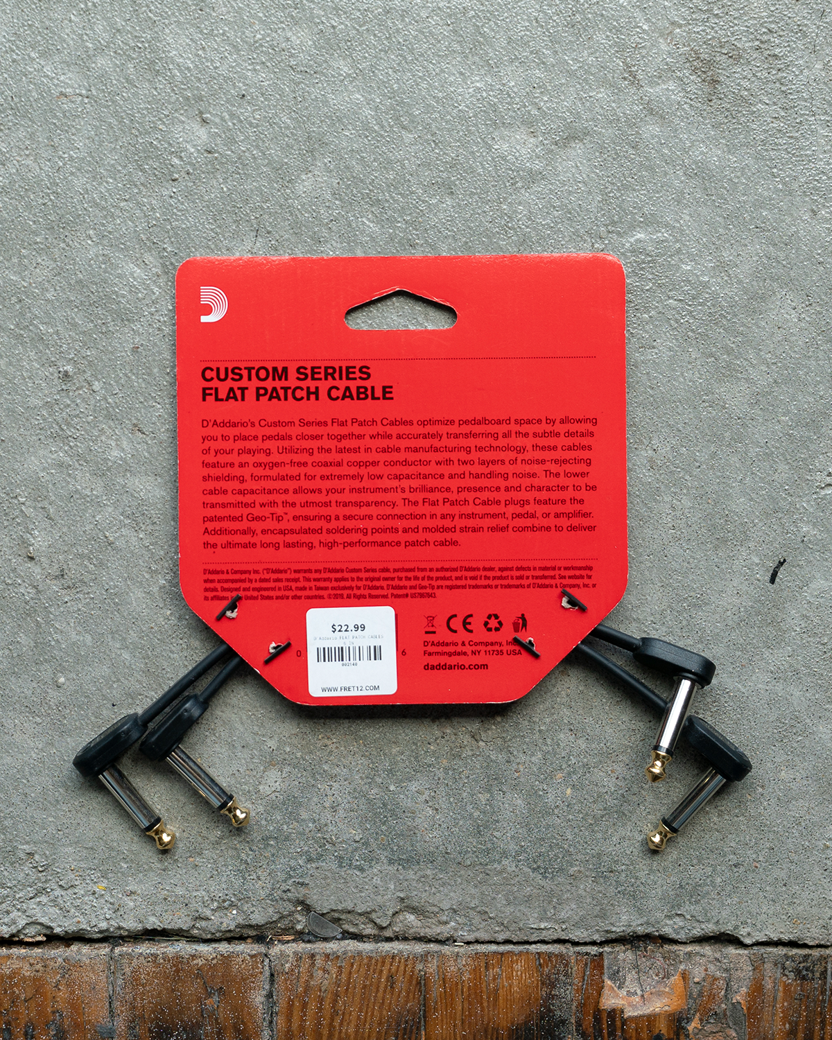 D’Addario’s Custom Series Flat Patch Cables help you optimize pedalboard space by allowing closer pedal placement while accurately transferring the subtle details of your sound. These cables have an oxygen-free coaxial copper conductor with two layers of noise-rejecting shielding, formulated for extremely low capacitance, so your instrument’s brilliance, presence, and character transmit with the utmost transparency. The Flat Patch Cable plugs feature the patented Geo-Tip, which ensures a secure connection with any instrument, pedal, or amplifier. Encapsulated soldering points and molded strain relief combine to deliver the ultimate long-lasting, high performance patch cable.