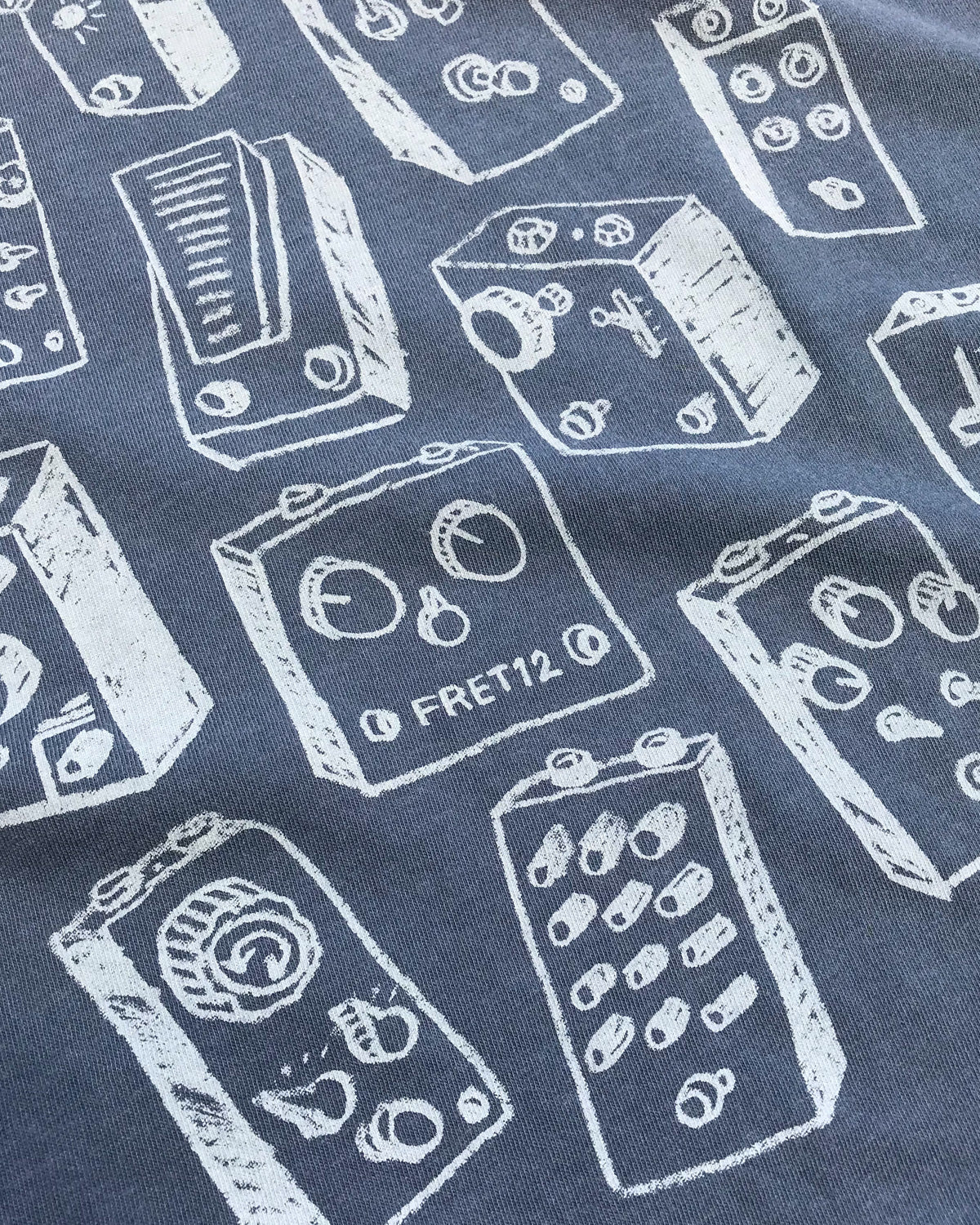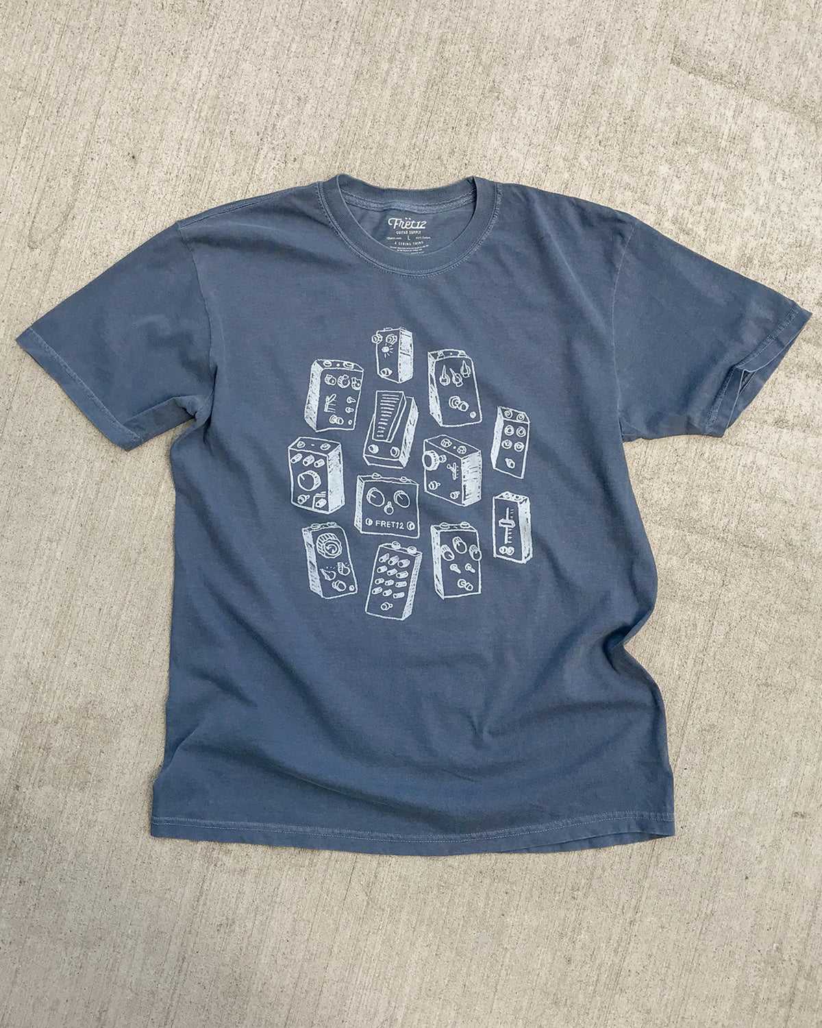 To build an effects pedal is to imagine a sound that you alone can hear and render it in reality. To take an idea from the brain and capture it in a box takes experimentation, an obsessive attention to detail, and an uncompromising vision to replicate the exact tone you’re looking for. That’s the process we’ve emulated for our new run of Pedal Junkies tee — it’s a tribute to the DIY stompboxers and mad scientists who take the sounds in their head and turn it into hardware.