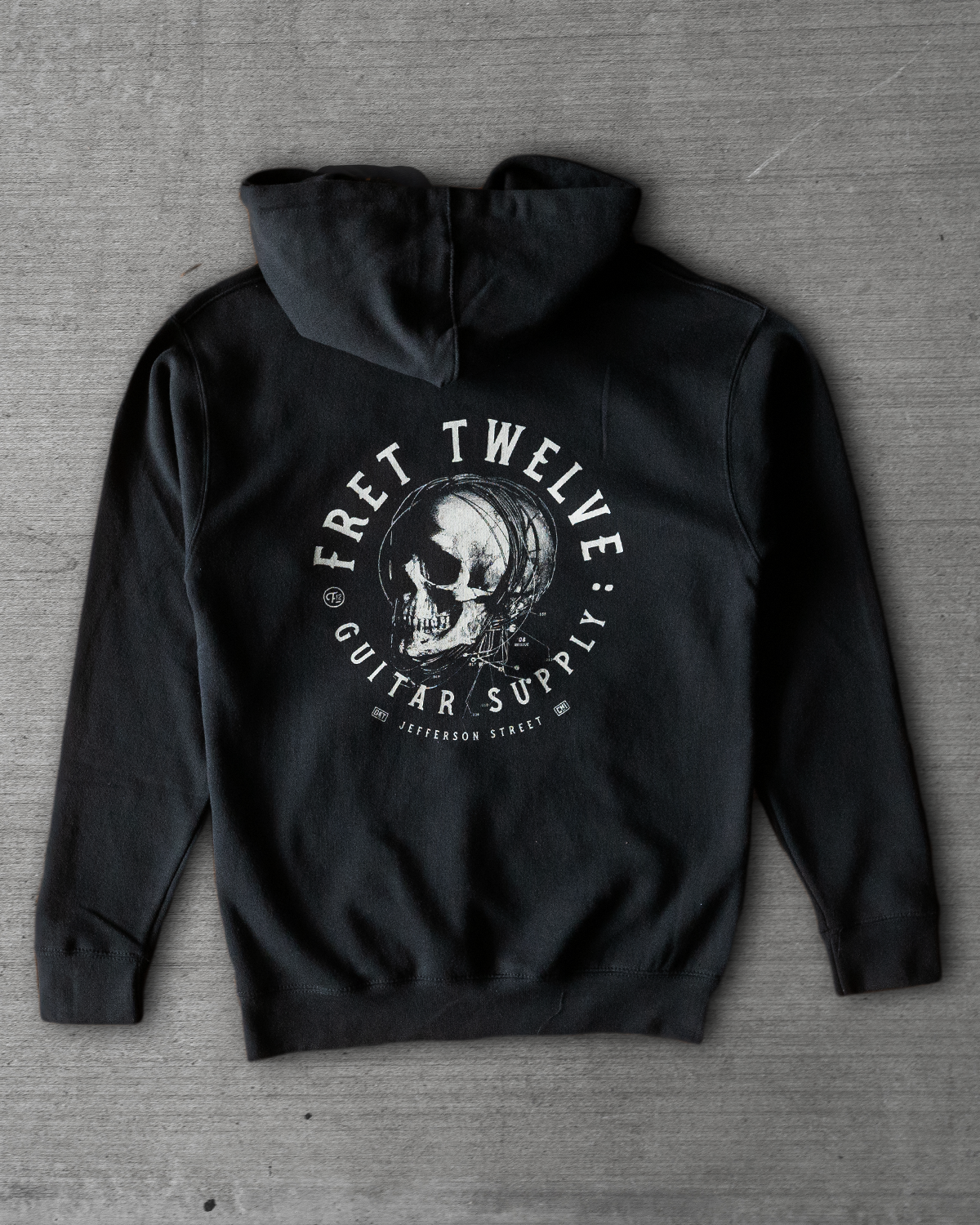 The classic, reimagined. A re-issue of the iconic FRET12 Strung Out Skull design, this heavyweight black hoodie combines timeless style with rugged comfort. A cult favorite among die-hard fans, it’s built for those who live life loud and on the move. Durable, cozy, and ready for the road, it’s a tribute to the rebellious spirit that defines FRET12.