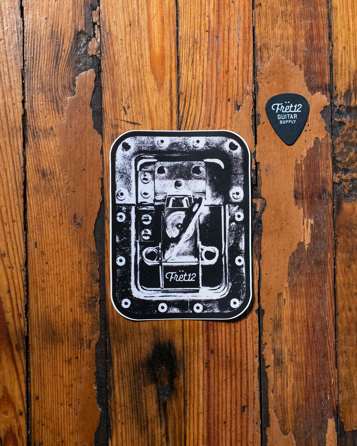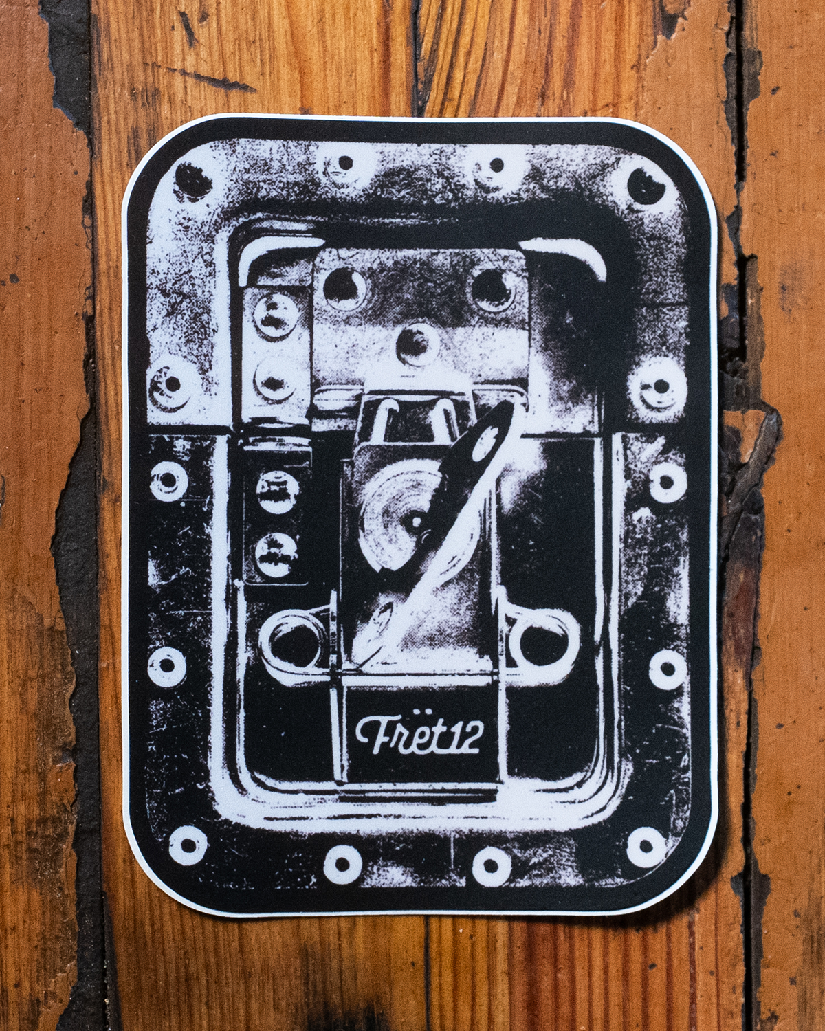 Premium vinyl die cut rectangle sticker featuring the FRET12 Latch graphic.