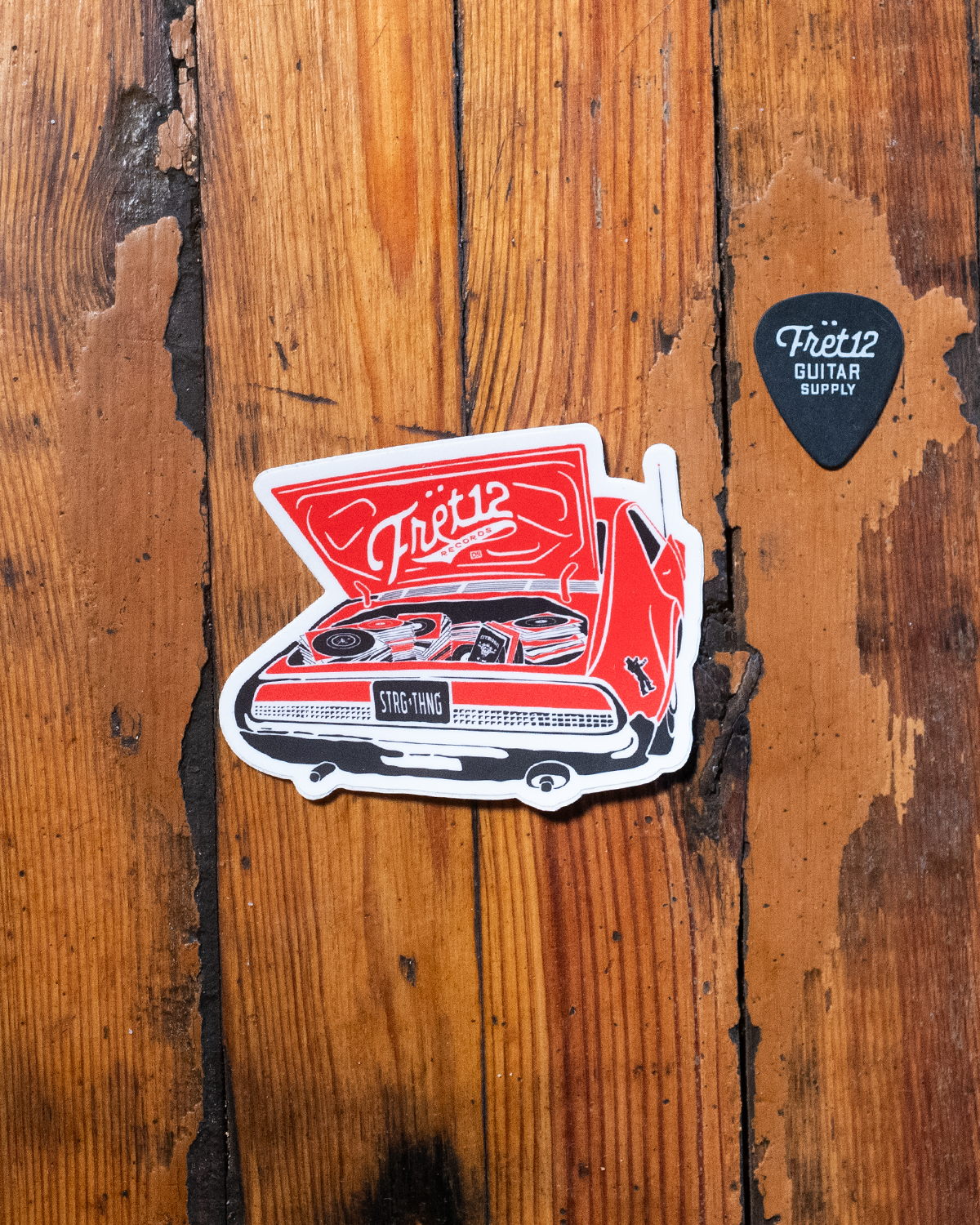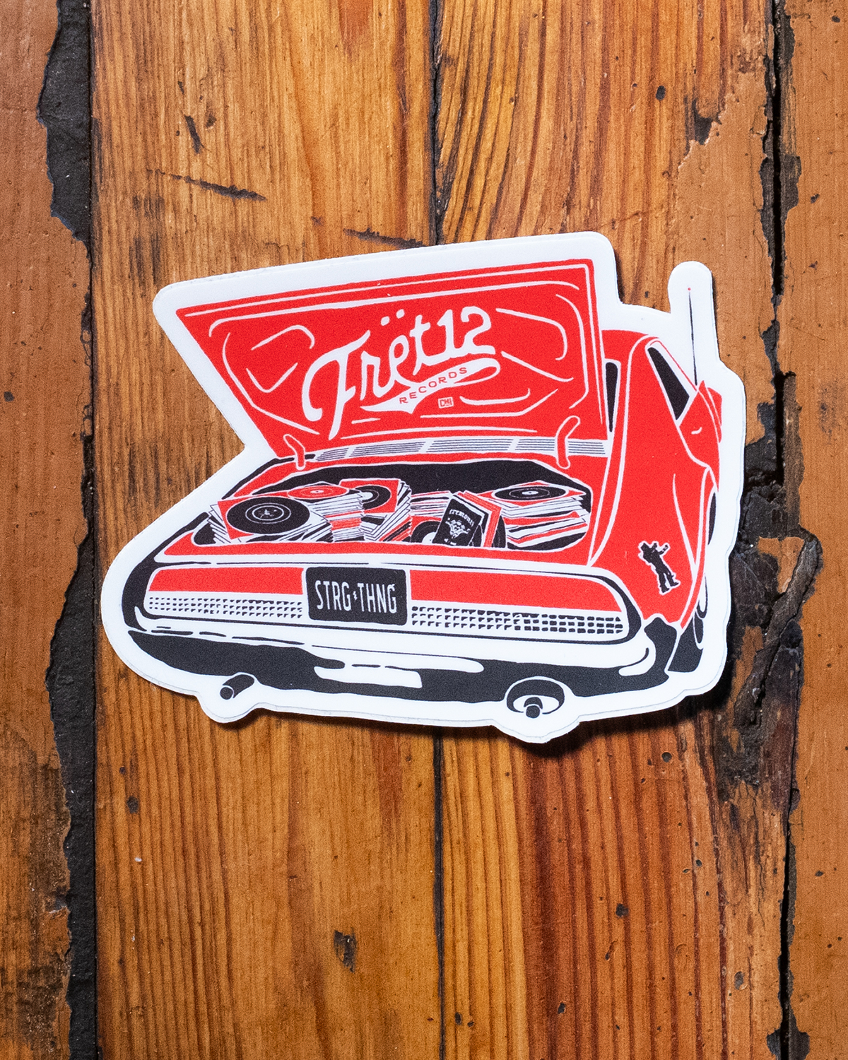 Sometimes when you're hightailing it between gigs, you'll find everything you need can fit in your trunk. From books to vinyl to gear, this is a sticker dedicated to those of us who live life from song to song on the road.