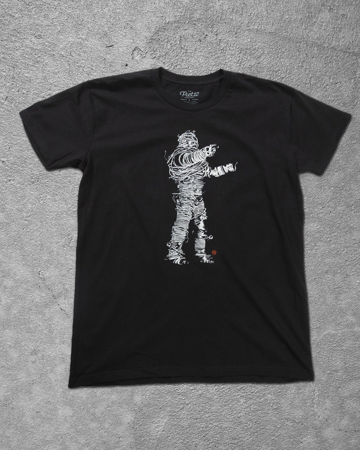 Rising from a pile of strings discarded backstage, our zombified, somnambulist mascot roams the musical universe in search of great tone.