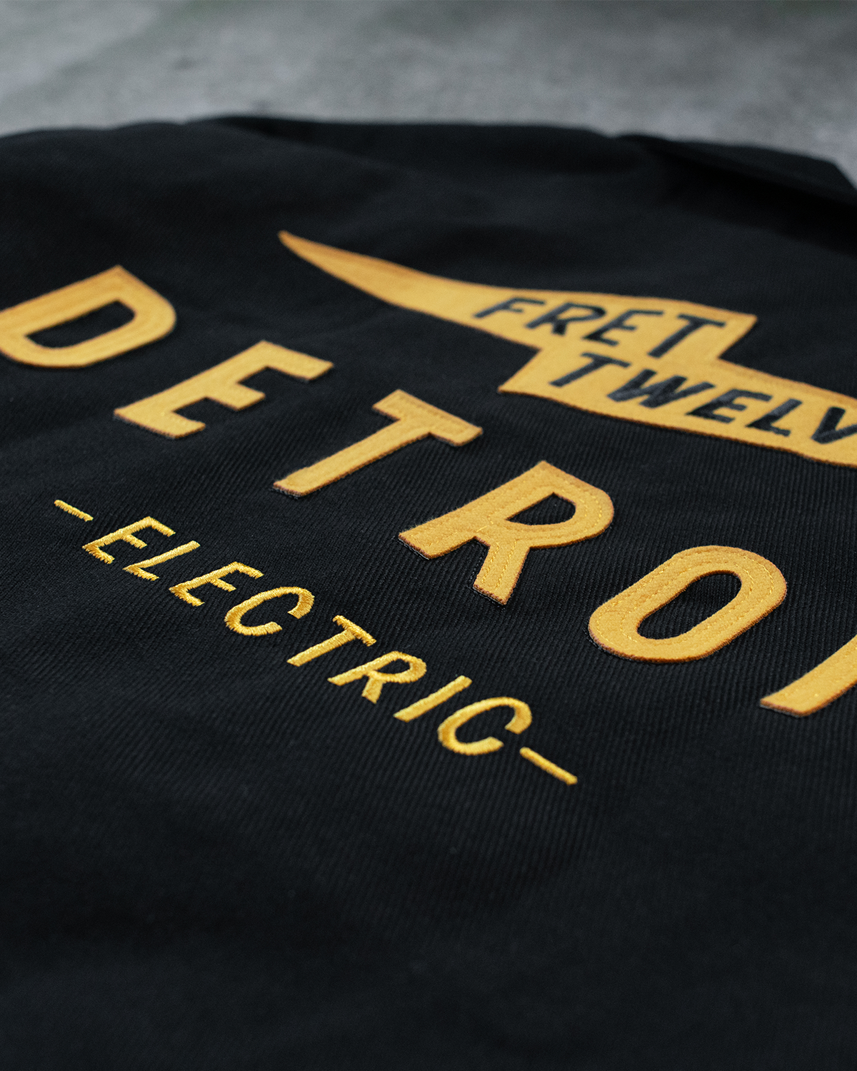 - FRET TWELVE Electric Detroit Bolt Twill Appliqué & Embroidery on back