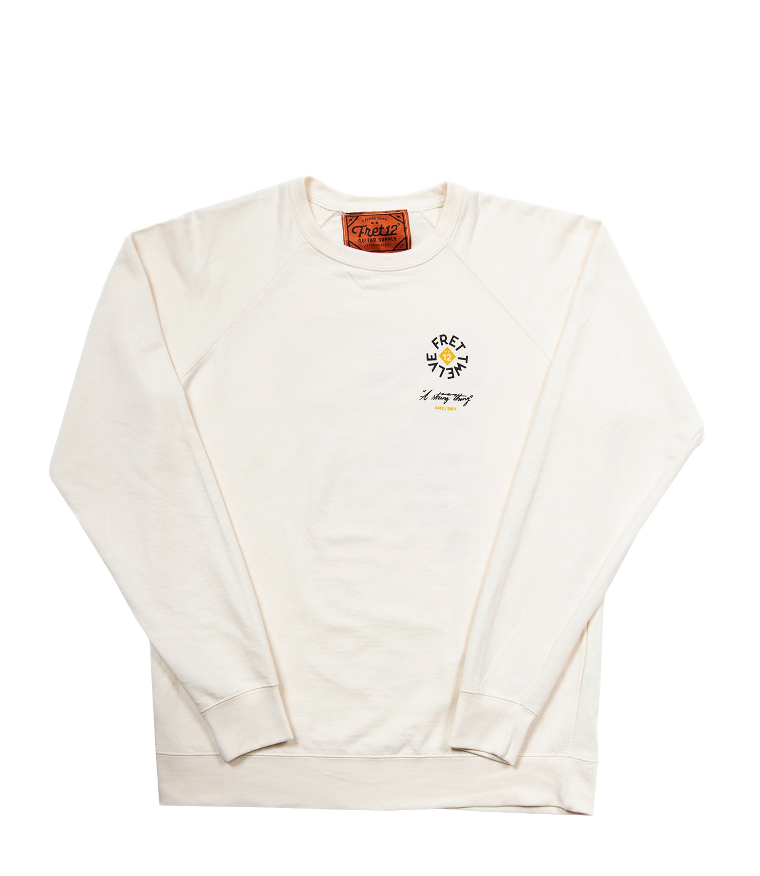 FRET12 Resonance Photography was spawned from the idea of capturing the macro angle of our favorite stringed instrument; you know, the part that does all the talking. We've captured one of our favorite coiled designs and placed it at the center of this classic crewneck sweatshirt.