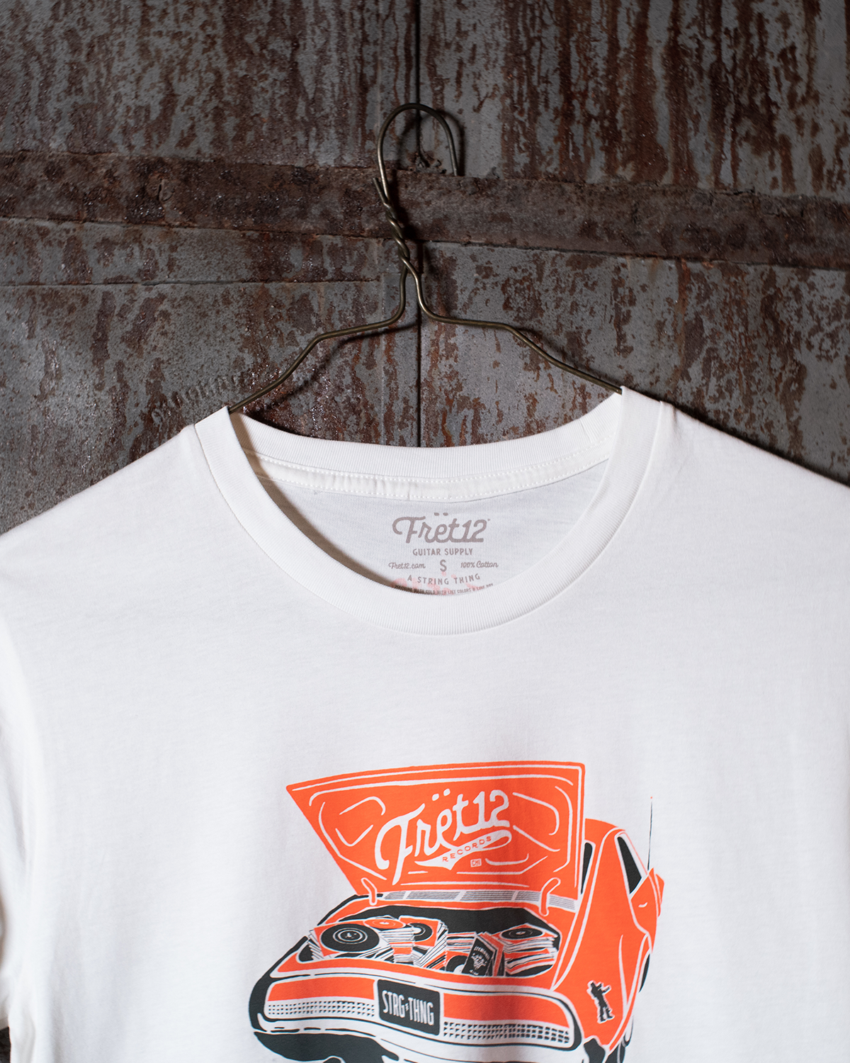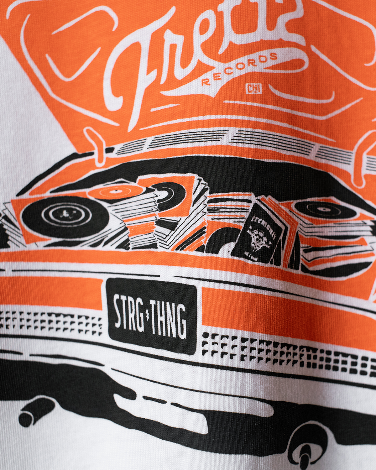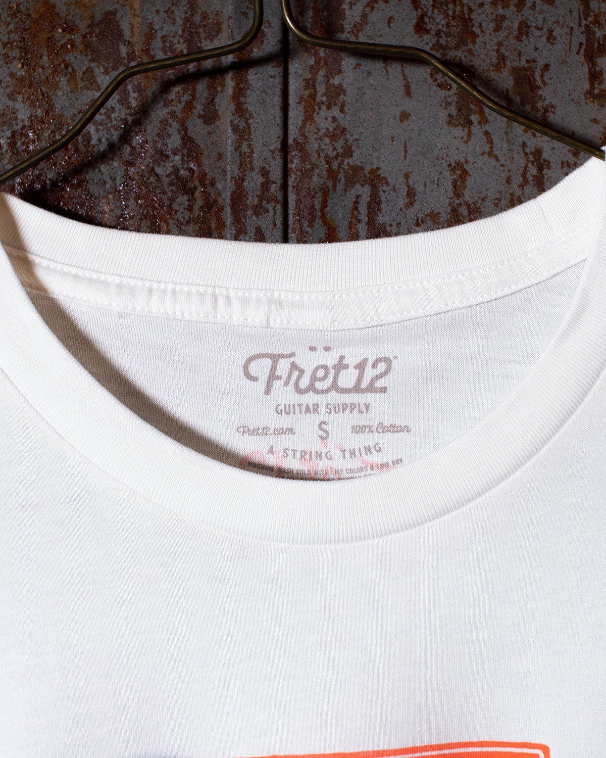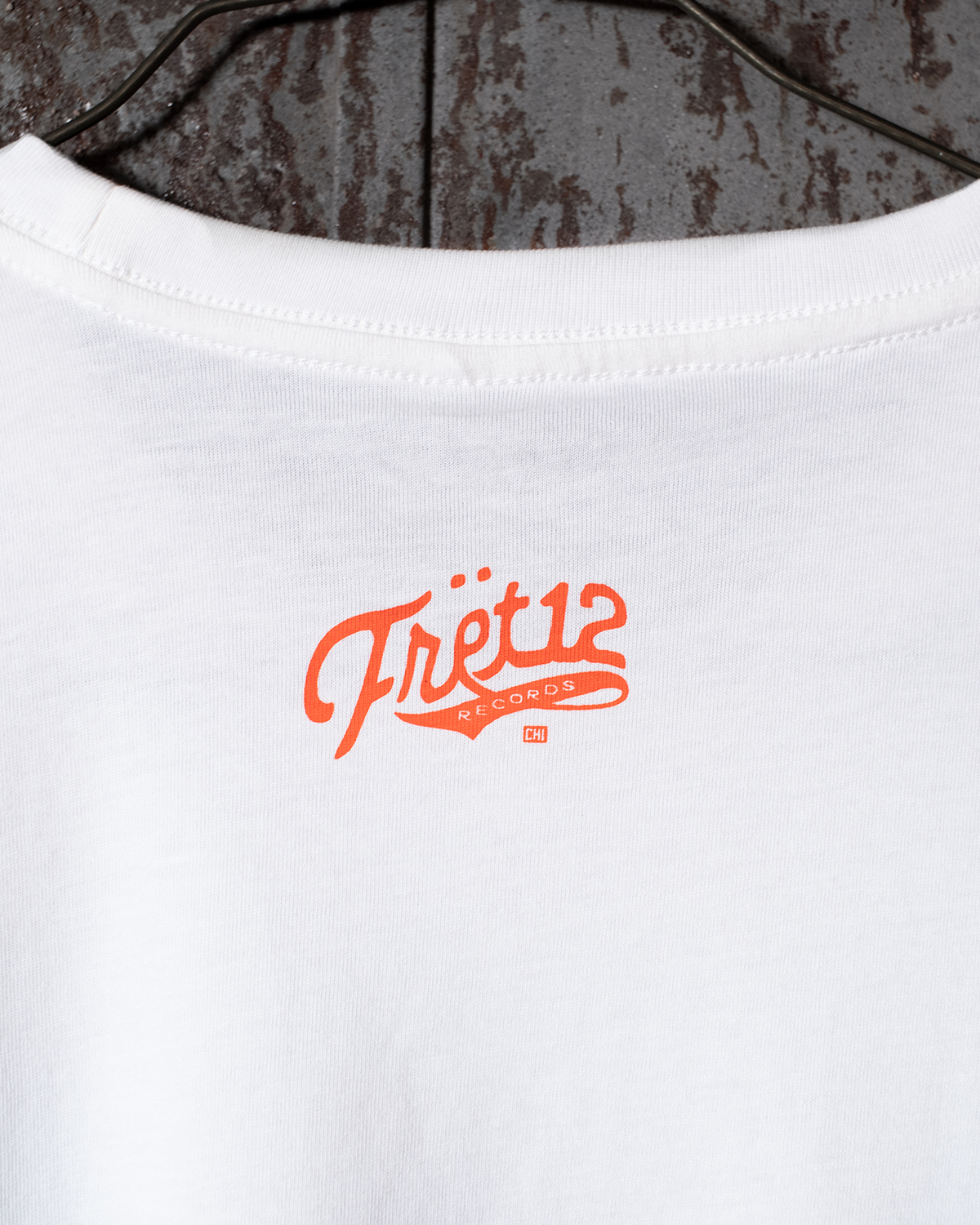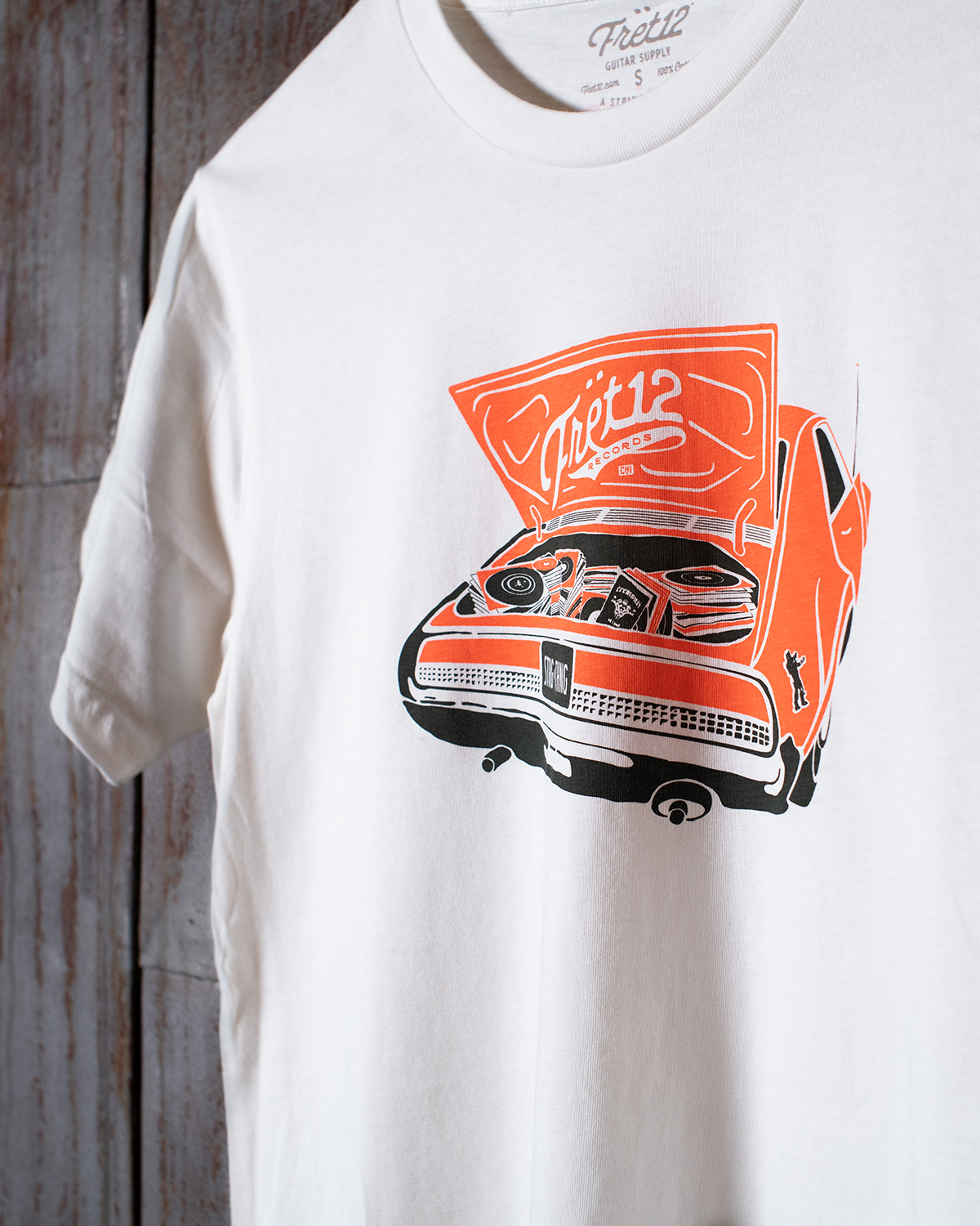 Some call the music industry a machine, but here at FRET12 Records, it's people and passion. Whether it's pressing our own custom releases, selling them digitally around the world, or even slingin' vinyl out of our trunk—the energy here always keeps the music flowing! Mid-weight cotton tee in natural.